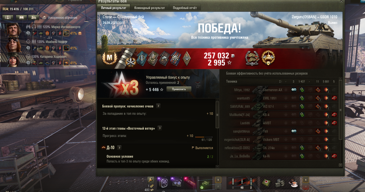 Сборка на скрине во всех последних 100 боях, без изменений.