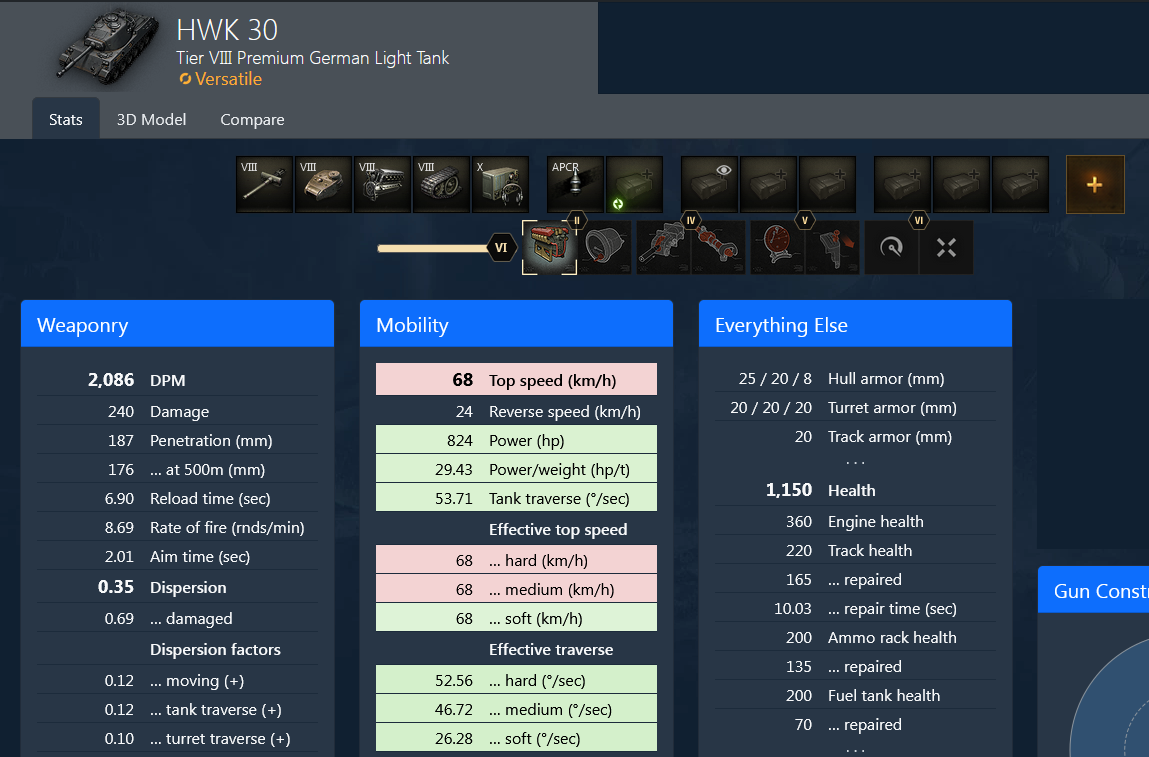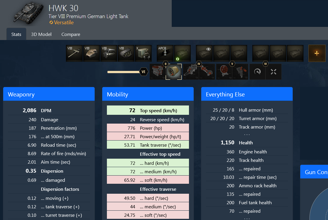 Из топовых у него обзор, пробой фугасом и дпм на фугасах же. Приемлемы или неплохи максималка и все, что связано с комфортом и результативностью стрельбы на любых типах снарядов. Мрачны размеры и как для ЛТ маскировка.