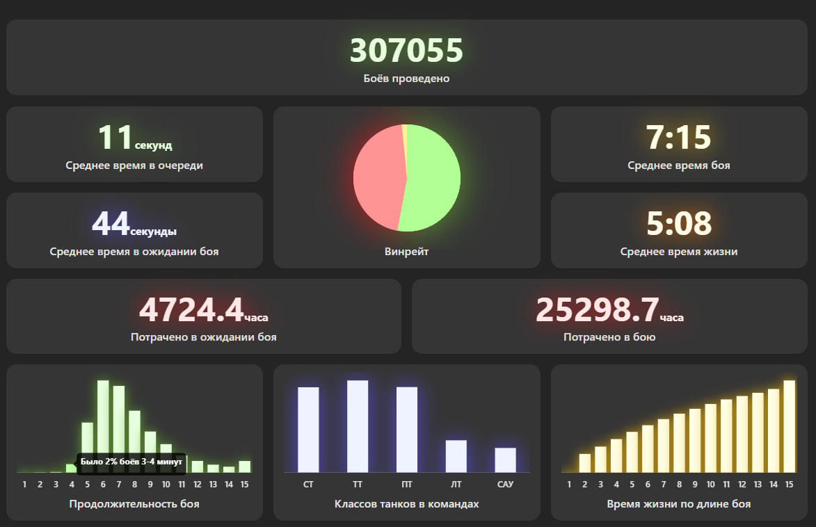 А боев до 4 минут всего около 2% из выборки в 300к боев.