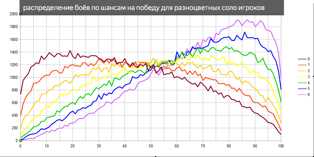 KO3JIRN Опубликовано: 15 февраля Игроки 640 публикаций 4 864 боя Жалоба Поделиться Опубликовано: 15 февраля 15 фев 2026 - 16:28 пользователь KPOT2338 сказал:Балансировщик не даст вытягивать каждый бой, т.к. набирает команды без учёта скиллаПримеры для фиолетового игрока и для красного игрока---------------------------------------------------------------------------------------------------------------------соло+взвод2+взвод3, шанс на победу от цвета игрокараспределение шансов на победу по боям для солоигроков и взводовсоловзвод2взвод3 Хм занятно Ссылка на комментарий Поделиться на других сайтах Другие способы поделиться...