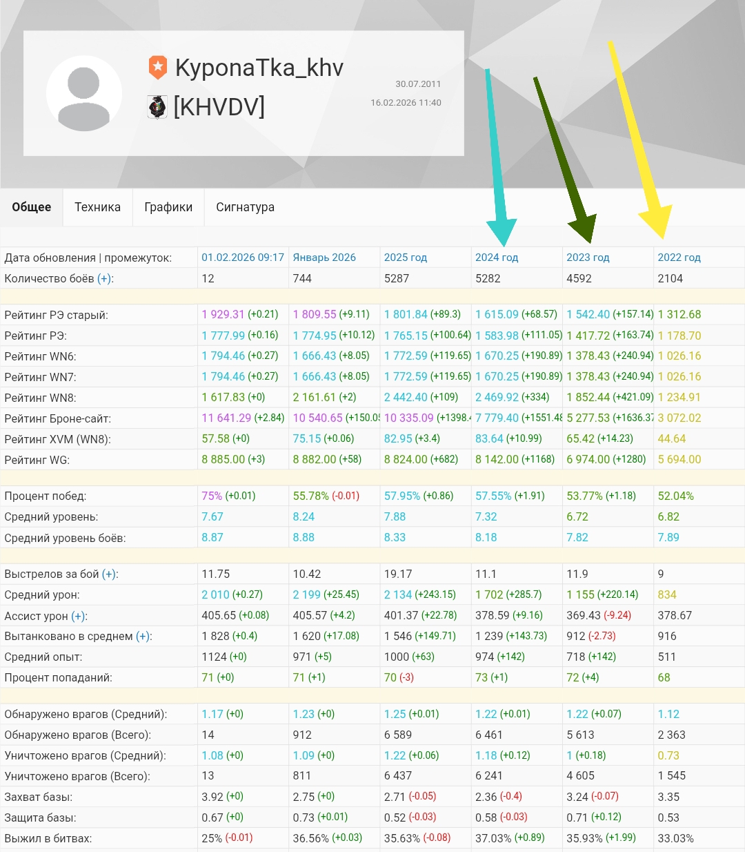 KyponaTka_khv Опубликовано: 16 февраля Игроки 316 публикаций 19 485 боёв Жалоба Поделиться Опубликовано: 16 февраля 16 фев 2026 - 18:43 пользователь _Koshej_ сказал:16 фев 2026 - 07:06 пользователь KyponaTka_khv сказал: Ложное утверждение. И по статистике это видно - нулевая эффективность со средним уроном 800. Я считаю, что хватает, если это не мусорный урон. Не просто считаю, а подтверждаю свои слова пруфом:Так то 2к это больше, чем хп восьмого тяжа. Нет, это малоДля стабильных мало однозначноСмотря конечно на каком танке, 8 уровень большойНо в целом маловато Посмотрим как дальше дело пойдет, но пока такого урона для побед хватает. Продолжу накатывать эту парочку танков. В любых играх ММО халявщики и бродяги пасутся на стороне и только в Мире Танков они заполонили форум и пытаются диктовать условия. © GG7_2021 Ссылка на комментарий Поделиться на других сайтах Другие способы поделиться...