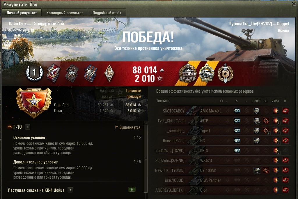 podkustnik Опубликовано: 21 февраля Игроки 20 225 публикаций 9 226 боёв Жалоба Поделиться Опубликовано: 21 февраля 21 фев 2026 - 20:23 пользователь KyponaTka_khv сказал:Фиксанул. И там 2800, зачем принижаешь? ну давай реплей, посмотрим какой ты папка «Сейчас можно сказать, что новых танков больше нет. Они кончились. Теперь мы будем двигаться в сторону развития новых игровых режимов, а вот новых машин вводить в игру гораздо меньше» С.Макаров 2019 Ссылка на комментарий Поделиться на других сайтах Другие способы поделиться...