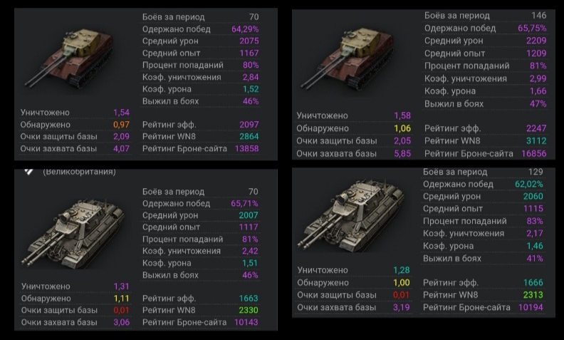 KyponaTka_khv Опубликовано: 21 февраля Игроки 315 публикаций 19 450 боёв Жалоба Поделиться Опубликовано: 21 февраля (изменено) Засыпает город, просыпается Куропатка. Друзья, что-то я давненько не выкладывал свои победные сессии, поэтому спешу поделиться с вами. Вот пожалуйста. Ничего необычного, всё по стандарту.Пис оф тэнькс рейтинг - 10kСредуха - 2200Победы - 58%. (К сожалению, не дотянул до своего психологического винрейта в 65%) Ну и ладно, потом отыграюсь. Поглядим, что там на дистанции. Тоже всё ок. Последние 734 боя - почти 62%.Ну тут понятно, просто повезло с командой. Далее идет парочка моих танков, вместо Арчибальдовых Тайпов. - У Капитана малость просел пп, но там и боёв пока на 17 меньше.- У Доппеля все показатели немного подросли. Объективно этот танк лучше из-за точности и скорострельности. Ещё набил 150 фрагов и Цейса подъехала в ангар, пусть стоит. Пока так. Если у кого-то появились какие-либо вопросы, задавайте. Только не все сразу, по очереди.Спасибо за внимание. Изменено 21 февраля пользователем KyponaTka_khv В любых играх ММО халявщики и бродяги пасутся на стороне и только в Мире Танков они заполонили форум и пытаются диктовать условия. © GG7_2021 Ссылка на комментарий Поделиться на других сайтах Другие способы поделиться...