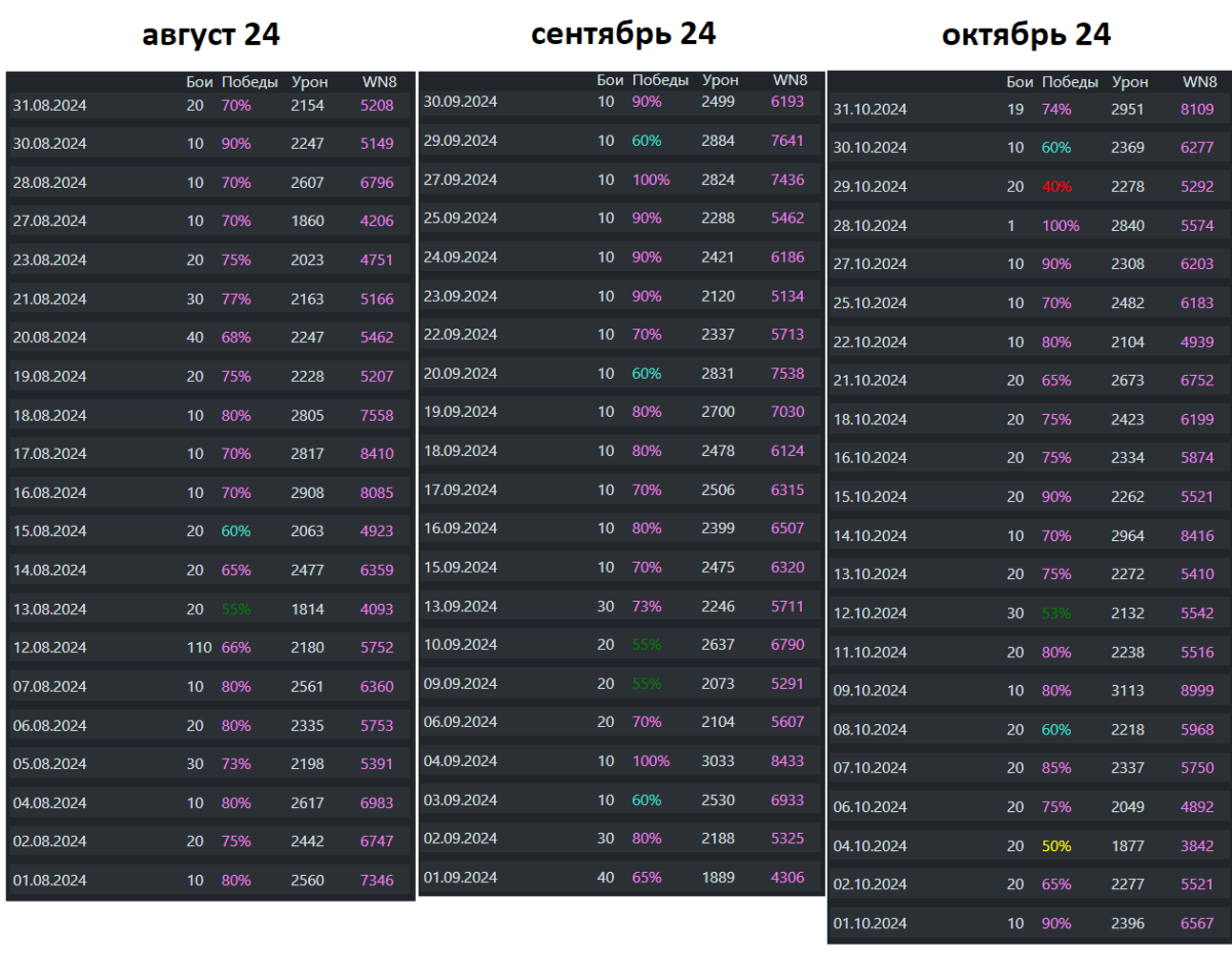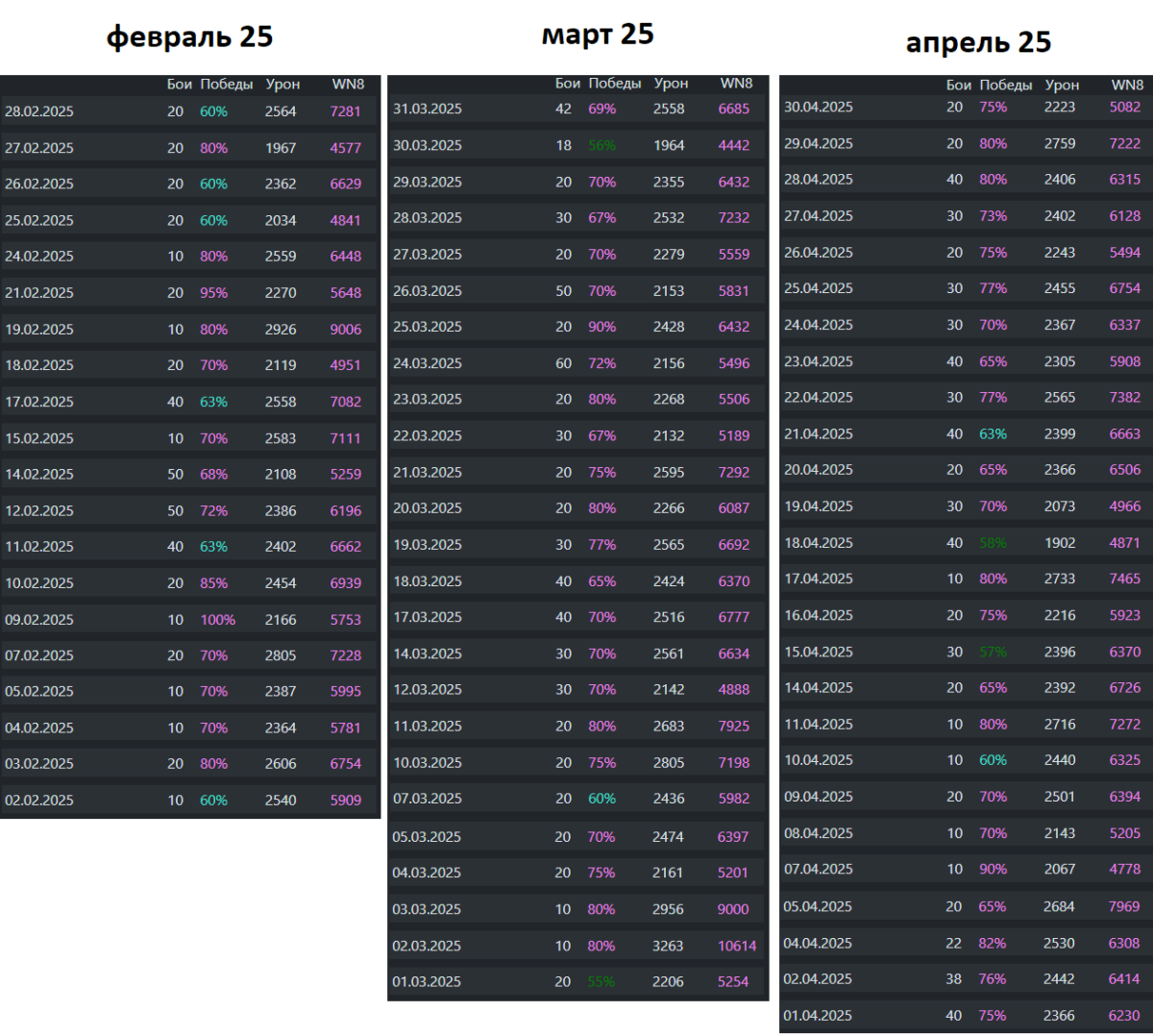 HELL_NOMAD Опубликовано: 27 июля, 2025 Игроки 63 публикации 34 041 бой Жалоба Поделиться Опубликовано: 27 июля, 2025 Вот играю одинаковые сессии несколько дней и миф про открутки и подкрутки перестает быть мифом. В один день все летит без сводки, альфа проходит сочная и победы одна к одной; а во второй альфа в 4 выстрелах из 5 ниже средней % на 10, треть выстрелов даже в габарит танка не попадает, а картон удивительно рикошетный становится, про то что на 10 матчей 1-2 победы упомянуть не лишне. В один день играя на одной и той же технике я набиваю хорошие результаты, а в другой хоть благословение от патриарха всея галактики получи - результаты будут удручающие, - это конечно никакого отношения к откруткам не имеет. Сейчас конечно группа "Скиловиков" налетит мол, ты играешь не так, целишься неправильно, про оборудку что-то вякнут. Ссылка на комментарий Поделиться на других сайтах Другие способы поделиться...