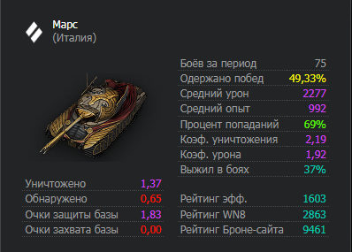 podkustnik Опубликовано: 4 марта Игроки 20 232 публикации 9 226 боёв Жалоба Поделиться Опубликовано: 4 марта ну и коли безумие уже не остановить, тогда стоит ему придать хотя бы некоторую правдоподобность и приближённость к оригиналуво-первых, танк надо брать цикличныйво-вторых, полную статистику, как на скринах тайповв-третьих вытекает из второго: полная правдоподобная статистика будет видна только на танке, который стартует без боёв так что, пока не принимается, соре «Сейчас можно сказать, что новых танков больше нет. Они кончились. Теперь мы будем двигаться в сторону развития новых игровых режимов, а вот новых машин вводить в игру гораздо меньше» С.Макаров 2019 Ссылка на комментарий Поделиться на других сайтах Другие способы поделиться...