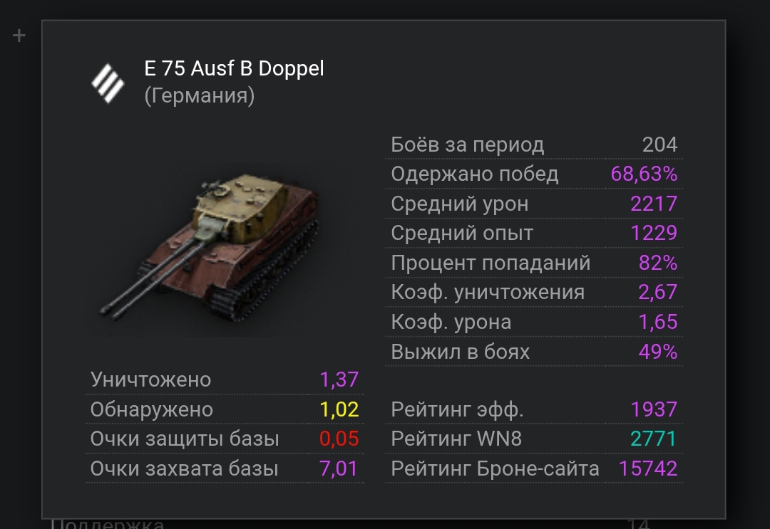 _Koshej_ Опубликовано: 16 марта Игроки 23 014 публикации 61 874 боя Жалоба Поделиться Опубликовано: 16 марта 16 мар 2026 - 06:25 пользователь TT_asb сказал:В общем промежуточный итог:Сыграно 5 сессий по 20 боев. Итого 100 боев.Средние показатели: МТР 7993, ПП 53, ну и стоит это мероприятие 3кк, или 30,5к серебра за бой. Убытка конечно же. По большому счету закономерность в плане попадания в сливные команды не нашёл. Определенно бои с овощами есть, но не так чтоб их тотально много.Иной раз я сам отыгрывал как овощ и это не всегда выражается в поражение, или победу команды.Случались и эпик фейлы. Например вчера остался 1 на 1 с тяжем во встречке, но расстрелял бк в 0 и по факту слив. Что могу сказать по теме. Откруток сильно не ощутил, а кто-то вообще может сказать что мне довольно сильно накручено.Самая жаба, это пул наших великолепных карт с не менее великолепным антиповторителем. Конкретно на ЛТ играть на них "одно удовольствие".В целом мне больше всего карты и мешают показывать какие то запредельные результаты.Скрины прилагаются.700-1000 уронакарты виноваты Достойна доля того кто правыйШирокий выбор, благое благоВершить заслоны, смотреть под ногиИ оставаться стерильным гостем Ссылка на комментарий Поделиться на других сайтах Другие способы поделиться...
