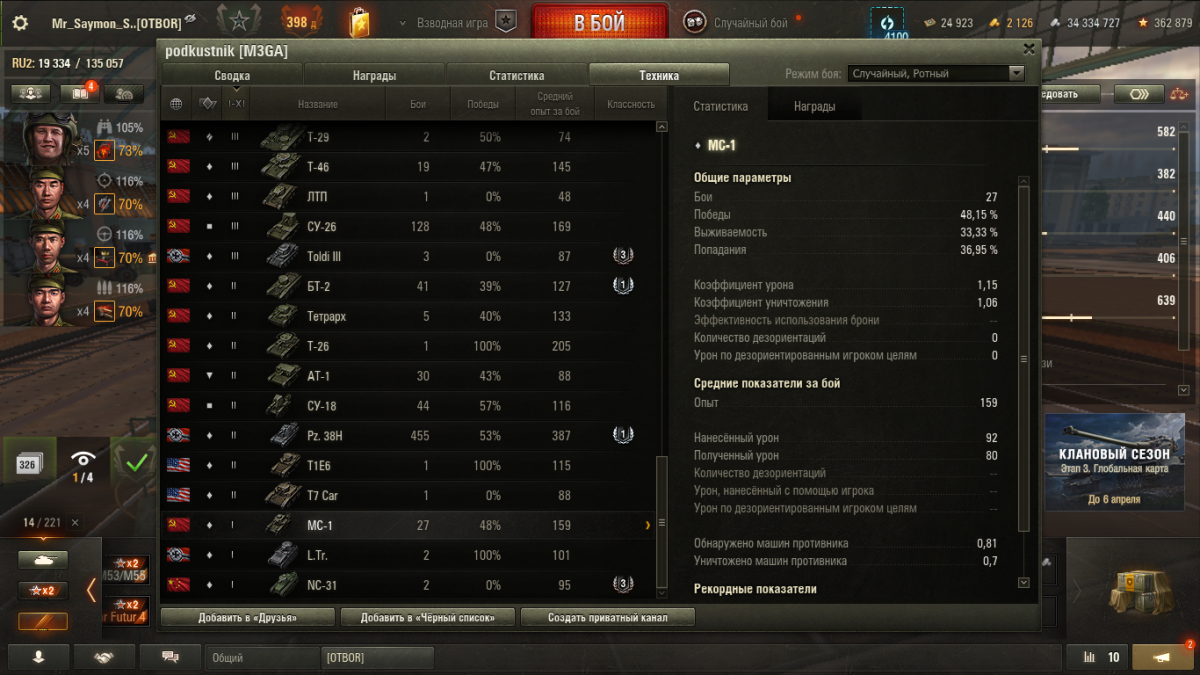 _C_E_H_O_K_O_C Опубликовано: 24 марта Игроки 643 публикации 4 864 боя Жалоба Поделиться Опубликовано: 24 марта 24 мар 2026 - 12:54 пользователь Mr_Saymon_Smit сказал: когда преференции не сработали и игра запинала ногами. Тогда ботов еще не придумали, когда он катал, да и я про общее количество боев говорю, а не про конкретный танчик Ссылка на комментарий Поделиться на других сайтах Другие способы поделиться...