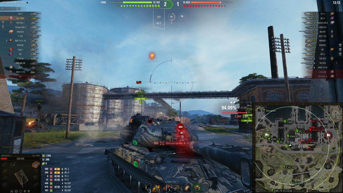 Выпал из легендарки. Какое же занерфленное творение от разработчиков... Понятно что изначально хотели динамичный ТТ, слегка порезанный по броне, но с хорошей пушкой. Из этого не осталось ничего. По заявленной скорости 55 км едет 27-30. Пушка хороша в теории : 233 пробития, 420 альфы, 1400 км/ч скорость снаряда, но это тоже только на бумаге. Кривая невероятно. Сделал 2 сборки одну на точность прицел+приводы, вторую на мобильность: грунтозацепы+турбина. Первый слот - досылатель, без него грусть. В экипаже мехводу король бездорожья 100%. В первом варианте стреляем со средней дистанции и более менее попадаем. Во втором едем 40-42 км/ч, разгоняясь до 46-50 с горки. До сих пор непонятно зачем было так нерфить танк в релизе, когда есть великолепные на его фоне Ис-6 Бесстрашный, Кв-4Т, объект 252У Защитник, 703-вар 2. Даже недавний танк за несложный марафон М-VII-Y на фоне 259А суперимба. Танку нужен ап динамики и комфорта стрельбы, тогда будет играбелен, сейчас без костылей в виде норм экипажа и оборудования очень убог.