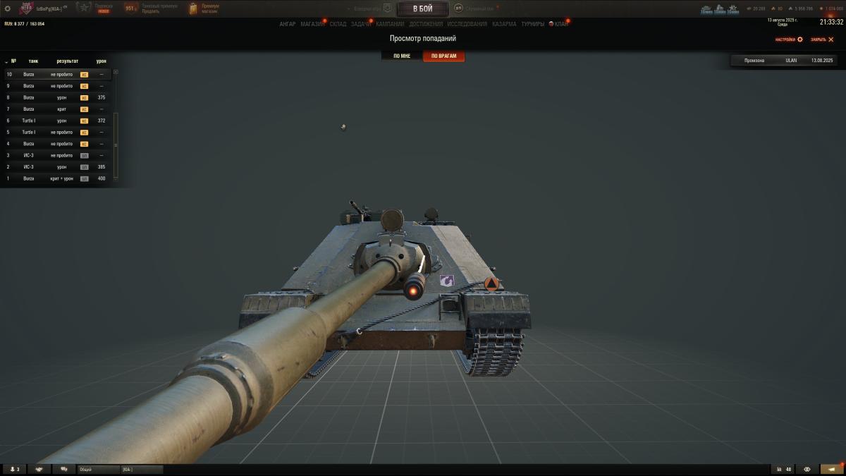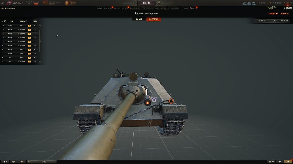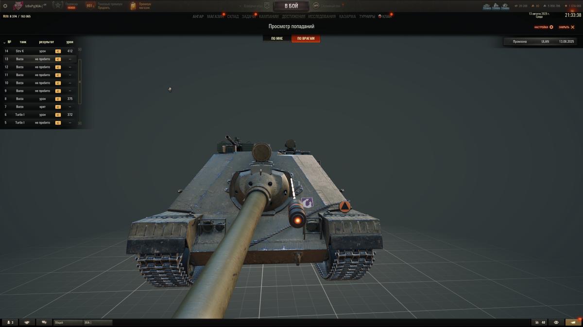 Я будучи на высоком танке ULAN с кумысом в 315мм, тоже наехал на пригорок и будучи выше в принципе по высоте и также стоя на пригорке, вот столько раз его не смог пробить