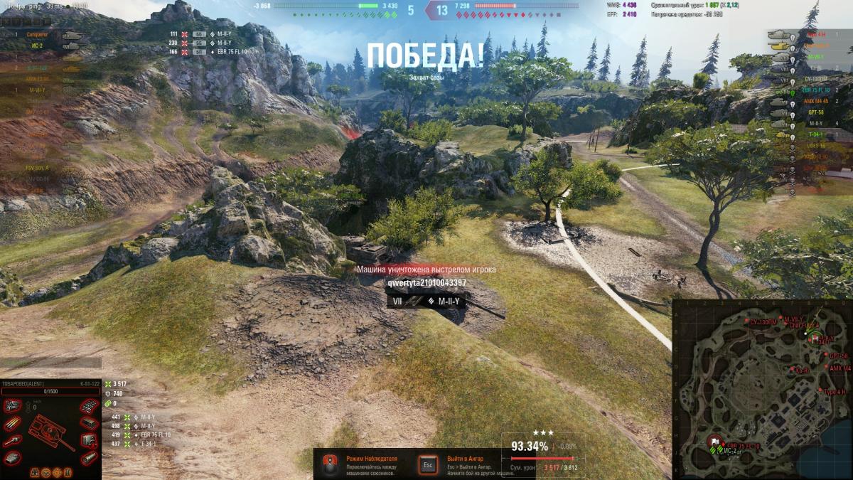 Gamsy Опубликовано: 30 сентября, 2024 Игроки 5 029 публикаций 29 694 боя Жалоба Поделиться Опубликовано: 30 сентября, 2024 Попал на карту уже раз 10. Все бои складываются по одному сценарию - у кого танков на левую сторону приехало больше, тот и победил... город пока быстро продавить ни у кого не получилось, вернуться на деф народ тоже не успевает Мыши плакали, кололись, но продолжали жрать кактус... Ссылка на комментарий Поделиться на других сайтах Другие способы поделиться...