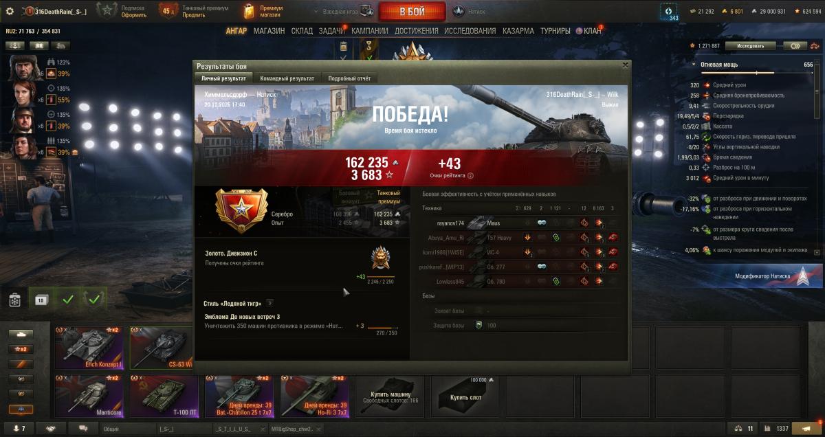 Сделал 8163 урония, союзники орали как чайки с этого боя. Разобрал 2 тт в начале с союзником. Но надо отметить что в том бою 268/4 ничего почти не сделал а стоял и дозабирал мины. Пока в общем рекорд этого натиска. И это карта Химки.