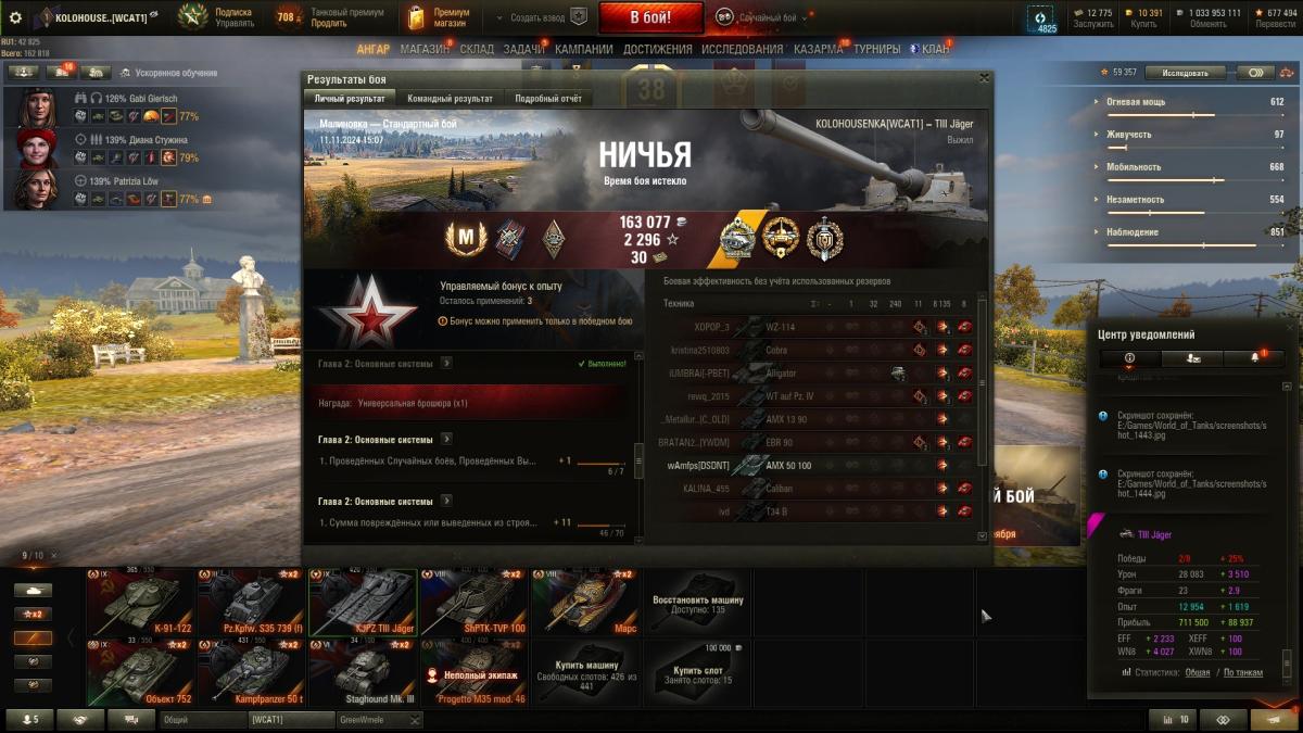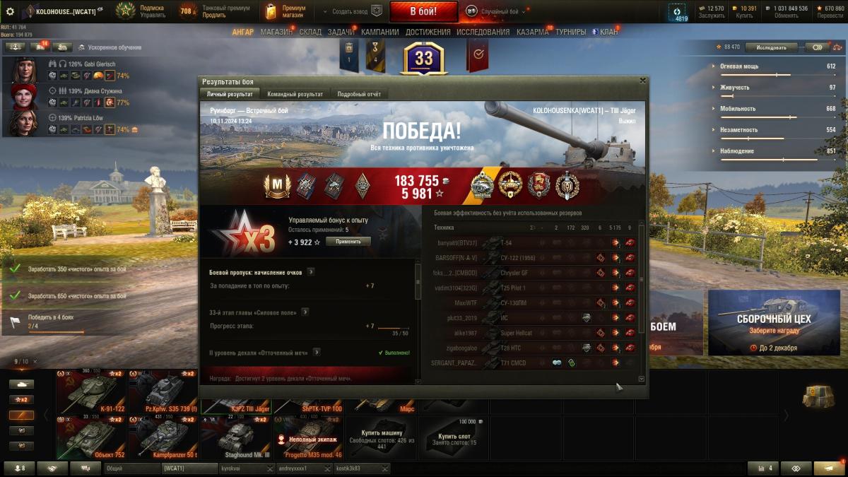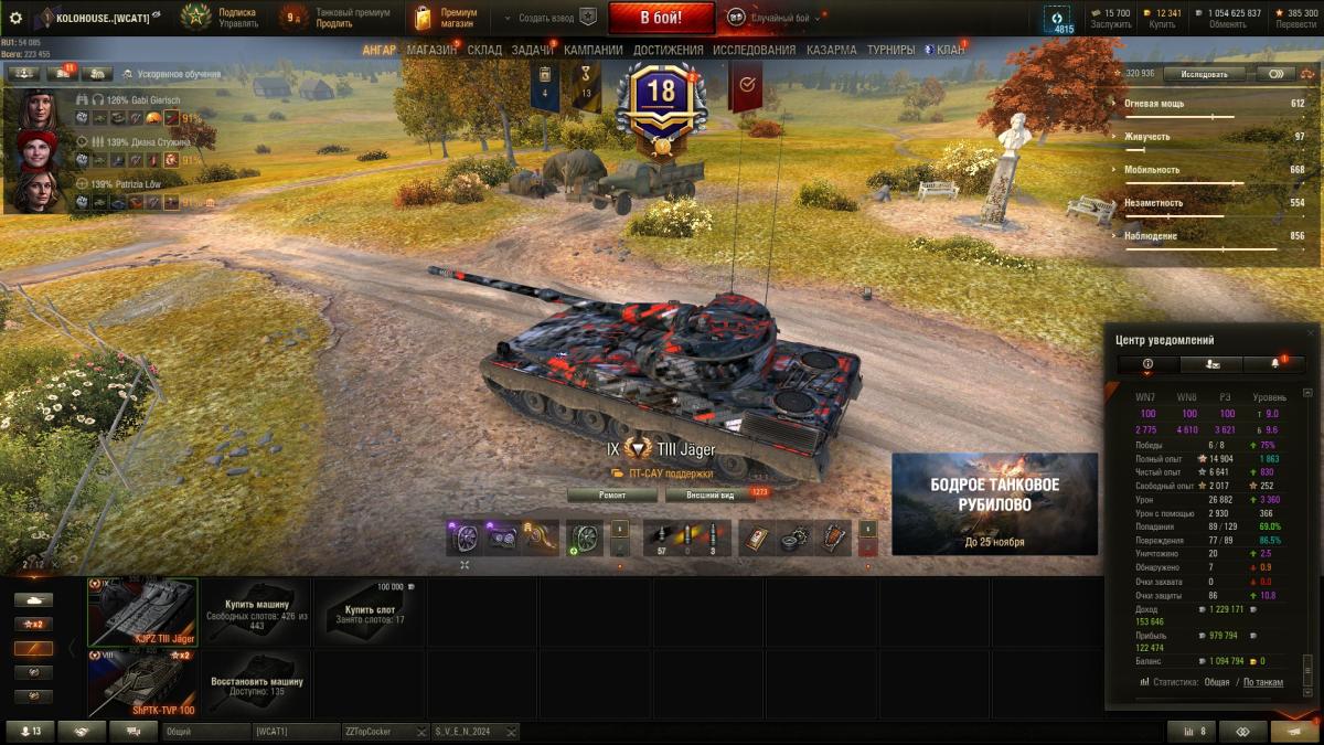 Ну что-же, докачал я полевую модернизацию, накатал на этой пт 75 боёв, 52% побед, 79,37% попаданий. На 7-ом уровне модернизации  пробовал все 3 варианта, мне предпочтительней была ускоренная перезарядка.  Резюме - танк не играбельный кактус. Сравнил его по характеристикам с (Alligator, К91-пт, Latt Strf 120, WZ120GFT, Kpz3 Pr.07HK, Strv 103-0? Cy-122 (1956), Wt. Pz4, Jagdtiger). По итогу мы имеем одну из самых высоких удельных мощностей (но вся она нивелируется низкой проходимостью!), самое лучшее время сведения и разброс (но чет у меня снаряды без полного сведения падают в землю, да и разброс после выстрела как "очк0" мамонта), средний обзор в 380 метров, ВСЁ!!!