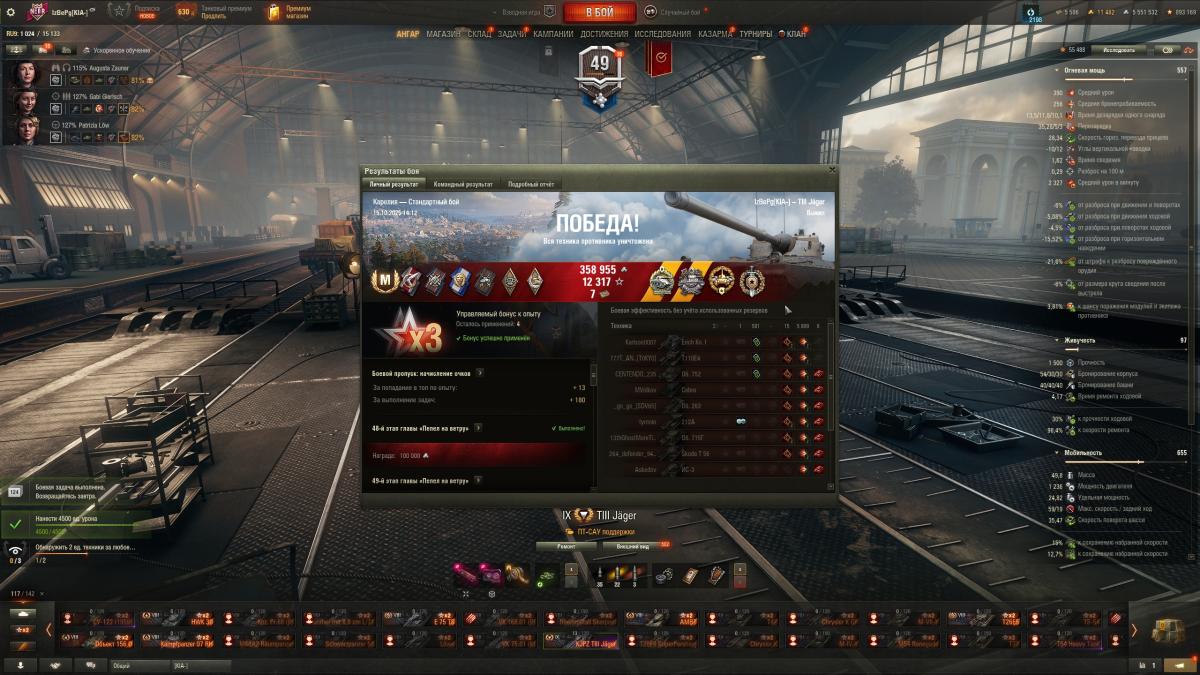 Пушка калибра 120-мм. с альфой… 390 = это ещё ЧО ЗА НА⁈ У того же близкородственного Kpz. Pr. 68 (P) и то честная 400-альфовая 120-мм. пуха с практически такими же "стабой" и "разбросом" — и, представьте себе, с неё можно удивлять оппонентов, имея лишь на долю секунды меньшую скорострельность при оптимальной сборке на дэмэдж дилинг, нежели у сабжа под "полным фаршем"! Вот только «шестьдесят восьмой», будучи уровнем ниже, обладает и реально неплохо раскачиваемой маскировкой (при этом строго, без излишеств!), и возможностью "воткнуть" КОП, что в синергии порой доставляет немало Проблем противникам. При этом у него немаленькая и (нередко, а оттого +/- стабильнотанкучая подвижная бронировка маски орудия! У сабжа же — при схожем стиле геймплея — ничего этого нет! Есть совершенно балластная возможность с чересчур надуманными условиями "стрелять (с альфой 390 — у 120-мм. пушки, напомню!) на целых 5 (‼) сек. раньше перезарядки", и так трижды (чтобы через 15 сек. выключиться из боя на полминуты с лишним — "гениально"!) + фарм бон — не ахти какой, ясен. Только Kpz. Pr. 68 (P) ещё позволяет свободно играться с типом выстрела: хошь — фугасом ЛТшку напужай, хошь — "кумулём" нагло прущую штурмовую ПТху в морду охолони, ежели ББхи с пробоем 230 мм. "поднаскучили", способные тем не менее, по "правилу 3 калибров" проламывать лбы всем этим «стервам» и прочей не в меру рационально-наклонно-бронячей шушере (которая лично меня своими удобством и засилием уже допекла)
