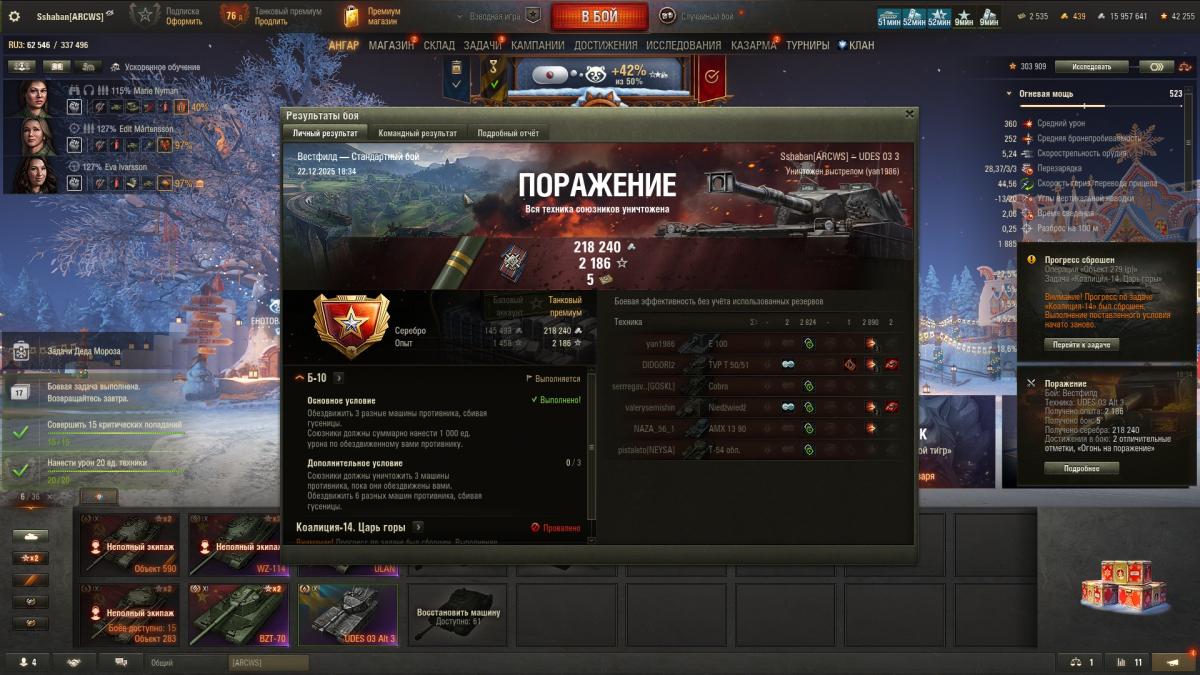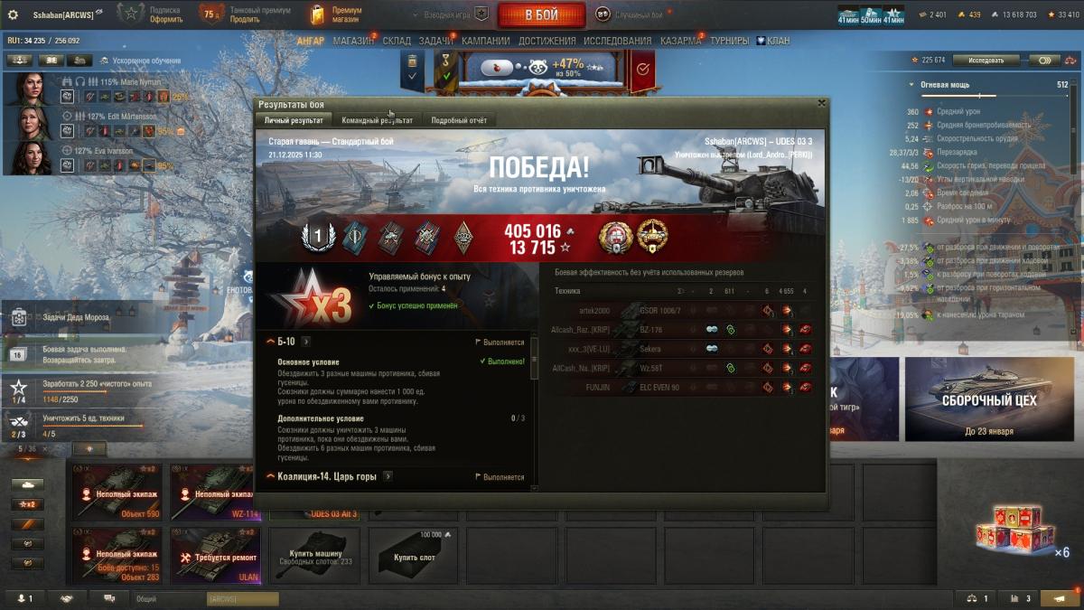 viksniper Опубликовано: 4 января Игроки 108 публикаций 88 647 боёв Жалоба Поделиться Опубликовано: 4 января 02 янв 2026 - 19:52 пользователь Salvador_Limones сказал: С орбитой и енотом, оснащением танков из коробок - серы как-то... ммммааааллоооо =) Я Буранова командиром посадил. Шведы думаю раскачаются сами - как нибудь. Шведу важен хороший экипаж сразу, все на обзор и маскировку. 3-4 перка желательно. Ссылка на комментарий Поделиться на других сайтах Другие способы поделиться...