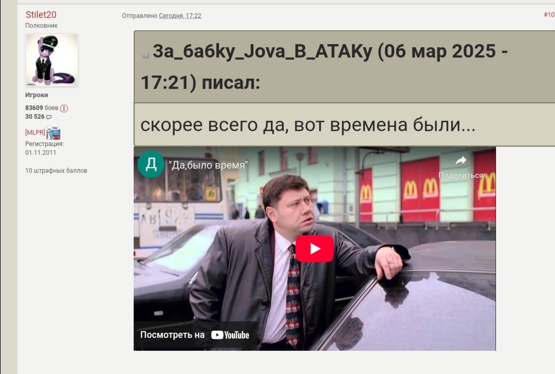 Stilet20 Опубликовано: 6 марта, 2025 Игроки 33 767 публикаций 83 609 боёв Поделиться Опубликовано: 6 марта, 2025 06 мар 2025 - 17:29 пользователь 3a_6a6ky_Jova_B_ATAKy сказал:у тебя что там за картинки? https://forum-mt-prod.lesta.ru/monthly_03_2025/post-59389654-0-11333400-1741271385_thumb.jpg не показывает.https://forum-mt-prod.lesta.ru/emoticons/Smile-hiding.gifВот https://forum-mt-prod.lesta.ru/monthly_03_2025/post-1252335-0-18266800-1741273000_thumb.jpg 1 17 май 2021 - 13:56 пользователь Ironthorn сказал: Ну логично, если админы выбрали путь имбы против нерфов, никто изменить это не в состоянии. Но я сосу чупа чупс красиво, по крайней мере по собственному желанию, а не как большинство - за копейку. Ссылка на комментарий Поделиться на других сайтах Другие способы поделиться...