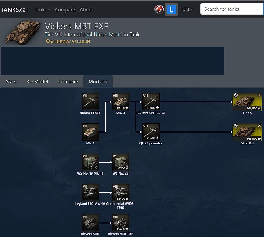 WH00SH Опубликовано: 26 апреля, 2025 Игроки 2 053 публикации 5 743 боя Жалоба Поделиться Опубликовано: 26 апреля, 2025 https://wiki.lesta.ru/ выбираешь любой танк, прокручиваешь вниз, там всем модули и стоимость в опыте и серебре. Ссылка на комментарий Поделиться на других сайтах Другие способы поделиться...