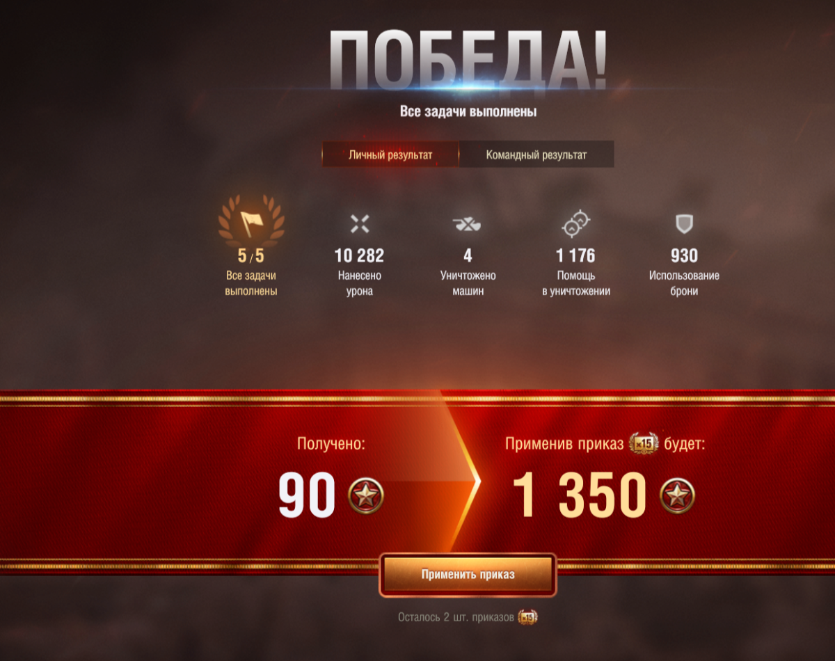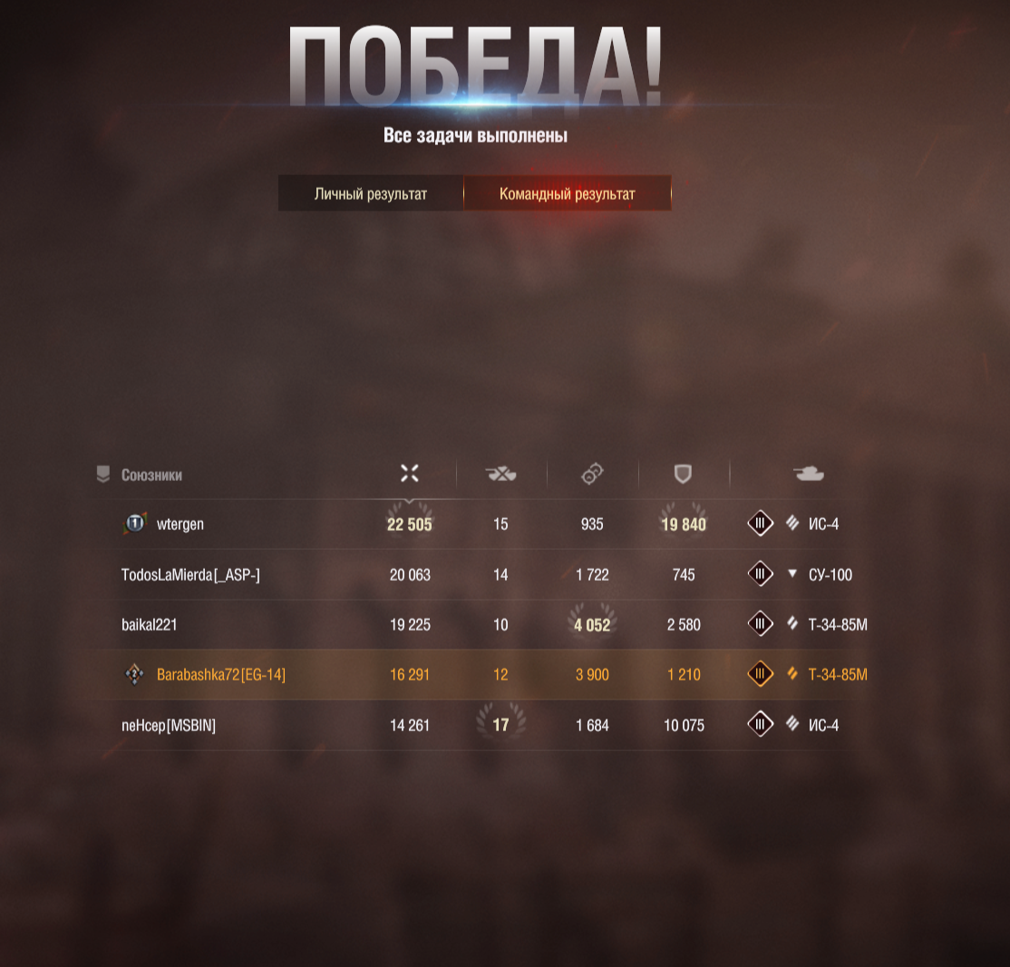 Conquistador Опубликовано: 6 мая, 2025 Игроки 2 003 публикации 36 044 боя Жалоба Поделиться Опубликовано: 6 мая, 2025 06 май 2025 - 22:09 пользователь TAKTCOM сказал:Что такое "Знамя победителей" из 9 части прогрессии и где его искать? Для завершения хватило 10 купленных приказов, плюс одного х5 и наградных 15 за прогрессию. Я правда СТ еще попробовал, УГ еще то, причем и в обороне ии в прорыве.Нормально СТ катаются, не гони. Мы два раза не успели из-за нехватки ДПМа закрыть волну мобов, все же у нас папки-дамагеры, ваншотов не добирают, а в 500+ стреляют. СТшки перекрывали этих ваншотов и всё.Да, не такие имбовые, как ИС-4, я таким же успехом могли дать Т-54 ранние, с 130 мм ВЛД, но и Т-44-85 отлично играет. 1 Ссылка на комментарий Поделиться на других сайтах Другие способы поделиться...