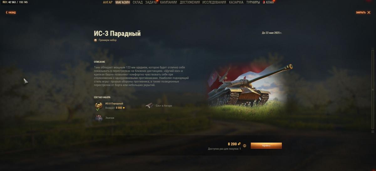 Mirdim78 Опубликовано: 11 мая, 2025 Игроки 811 публикация 66 696 боёв Жалоба Поделиться Опубликовано: 11 мая, 2025 11 май 2025 - 09:00 пользователь SPARC сказал:1000 голды. Даже не знаю - это безумно дорого. За прем-танк 7 уровня. Оборона на ПТ до третьего уровня проходится на изи. Там всего 2150 очков надо. БТ-5 артиллерийский - это просто весело. А в атаке купил ис-4 за 1000 голды и наслаждаешься. Там за 10 боев максимум проходитсяПрошел все на ис4, при этом не помню что бы танк подбивали, то есть ис3 ис2 брать не приходилось. 1000 голды учетом скидки на 9е мая это 100 рублей. Я про другое, ис4 это 10й лвл в игре, боссов хоть и 3 но они 8й лвл, а в рандоме 10ки с 8ками играют, не показывает ли этот режим что трехуровневые бои надо убирать, и вводить 2х уровневые. Ссылка на комментарий Поделиться на других сайтах Другие способы поделиться...