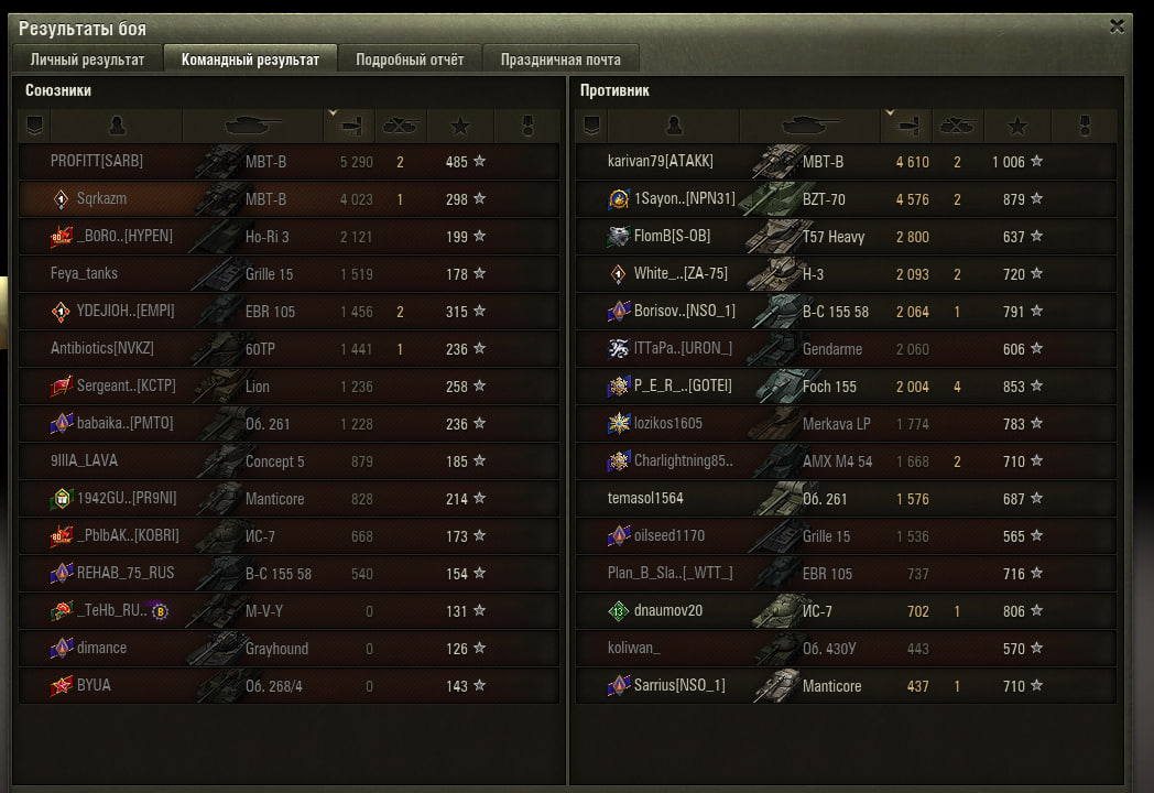 Да, часто такие сетапы где толпа 279 против толпы БЗТ. А вот МБТБ раскидывает примерно поровну.