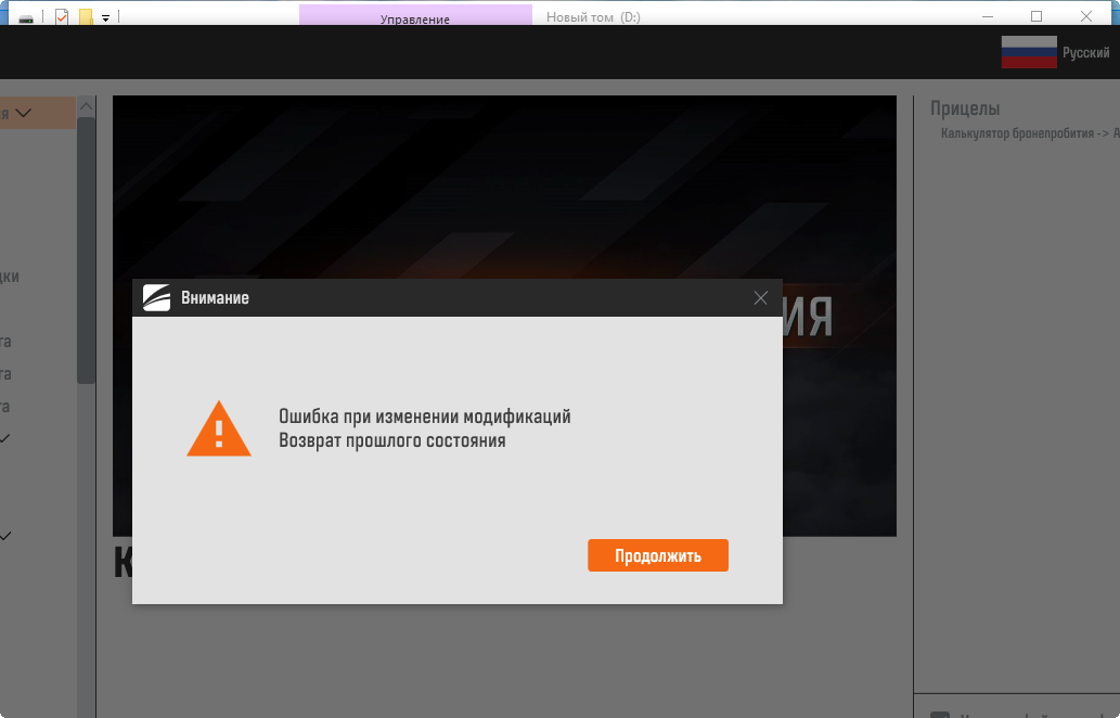 Такое сообщение появляется в том случае, если рабочий каталог для модификаций чем то заблокирован.