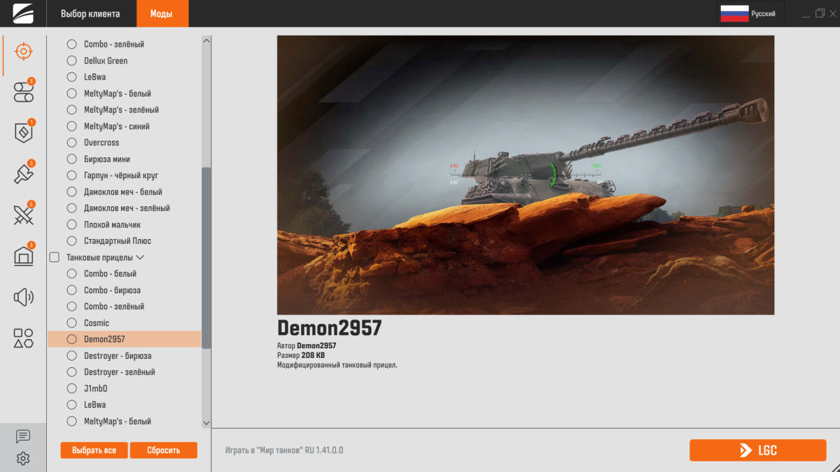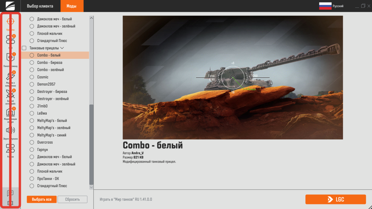 Переустанавливаю, в первый раз верхняя панелька работает, работает список модов в вкладке, смена языка. Но вкладку поменять и настройки открыть не могу. Если выберу мод, то кнопка открыть лаунчер "LGC" на установить не меняется.