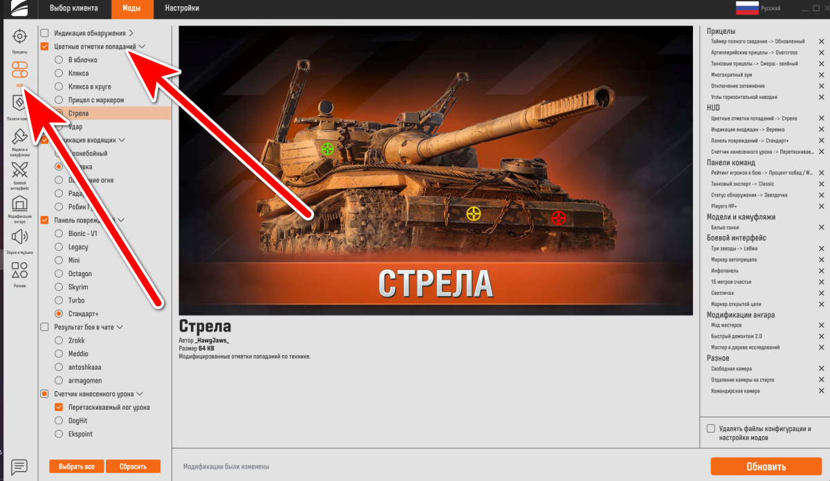 kupol13 Опубликовано: 3 ноября, 2025 Игроки 1 публикация 113 254 боя Жалоба Поделиться Опубликовано: 3 ноября, 2025 16 июн 2025 - 14:01 пользователь MedvedevTD сказал:https://forum-mt-prod.lesta.ru/monthly_07_2025/msg-6023513-0-14657000-1752822216.pngСервис установки модификаций для клиента игры Мультиязычность: Интерфейс представлен на русском и белорусском языках - поменять язык интерфейса программы вы можете в любой момент; Больше не требуется искать обновления для модификаций, МОСТ сделает это сам - при каждом запуске происходит автоматическая проверка наличия обновлений на сервере; Удобные графические превью модов - в МОСТ модификации представлены картинкой превью и видео примером; Подробное описание модов - мы постарались составить для вас подробное описание разделов и каждой представленной модификации. Не стесняйтесь предлагать лучшие описания для модификаций - мы обязательно прислушаемся к годным замечаниям; Большое количество модов на выбор - уже сейчас мы представляем для вас большое количество модификаций и продолжим добавлять новый контент, для того чтобы не оставить Вас без привычного и полюбившегося мода; Скачивание файлов модификаций игры с сервера прямо во время установки; Подсветка ранее установленных модификаций в списках групп; Экономия трафика пользователя - модификации которые устанавливались ранее и не требуют обновления, более не скачиваются при каждой установке. https://forum-mt-prod.lesta.ru/monthly_07_2025/msg-6023513-0-87357100-1752822283.png Все модификации, устанавливаемые с помощью данного сервиса, проверены, одобрены, не содержат вирусов или иного зловредного кода. Необходимо понимать, что модификации разрабатываются игроками и для игроков, поэтому могут содержать ошибки (команда проекта делает все возможное для того, чтобы осуществлять предварительную проверку, но полностью риск появления технических проблем в результате модификации игрового клиента исключать нельзя). Для корректной работы устанавливаемых модификаций, сервис удаляет содержимое версионных каталогов mods и res_mods.Очень сильно лагает! Не отображается урон..... Танков иногда совсем не видно только гусли.....Постоянно клиент проверяет на целостность выбивает прям из боя....... Что вы там натворили? 1 Ссылка на комментарий Поделиться на других сайтах Другие способы поделиться...