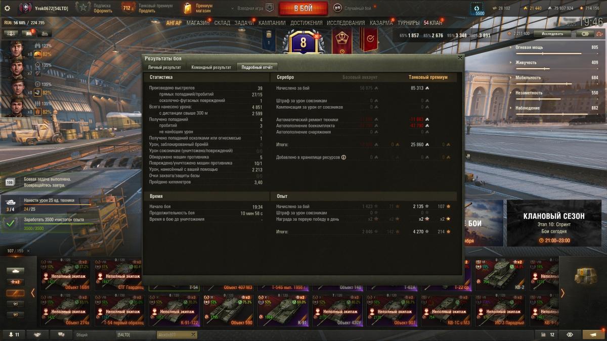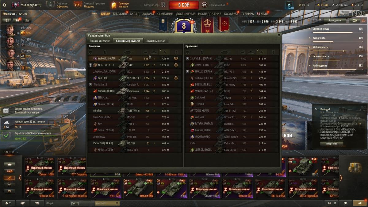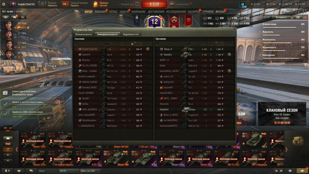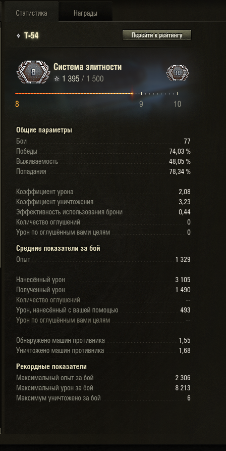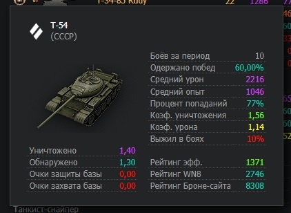 А вот тебе моя статистика игры Т-54 на Евро с пушкой Д-54: