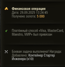 sopulga Опубликовано: 28 сентября, 2025 Игроки 5 071 публикация 61 773 боя Жалоба Поделиться Опубликовано: 28 сентября, 2025 28 сен 2025 - 21:12 пользователь Stark1708 сказал:Так, мне нужен ответ разрабов. Кого, где и как нужно ещё уничтожить чтобы мне засчитало? Глаза разуй и внимательно условие задачи читай, и не в результатах боя (там леста каквсигда Абделалась - описание кривое), а в ангаре режима.Задача звучит - 5 (ПЯТЬ КАРЛ!!!) часовых завалить за 1 (ОДИН КАРЛ!!) бой. 1 Ссылка на комментарий Поделиться на других сайтах Другие способы поделиться...