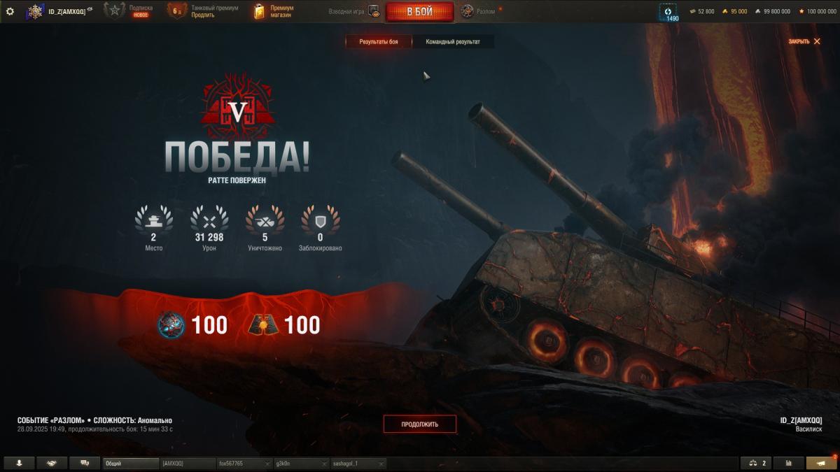 JESS70 Опубликовано: 20 октября, 2025 Игроки 2 524 публикации 7 939 боёв Жалоба Поделиться Опубликовано: 20 октября, 2025 20 окт 2025 - 16:29 пользователь berezka_26 сказал:Вполне, можно собрать взвод из 5 человек и пару часов посидеть плотно, то вполне реально забрать один из 100к танков Если мои подсчёты верны, то если за основу расчётов взять 1 место во всех боях, победы, а также учесть, что первые четыре боя будут проводиться на сложностях от "Просто" до "Критично" (чтобы открыть последний уровень "Аномально" ), то суммарно необходимо провести 26 боёв.И еще один вопрос. Как 26 боев уложить в пару часов, если 1 бой - 15 минут? Можно успеть победить за 4 минуты? 3 Колёсников надо нерфить! Нет самым токсичным танкам игры! Ссылка на комментарий Поделиться на других сайтах Другие способы поделиться...