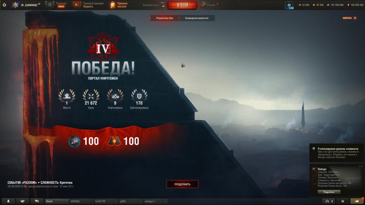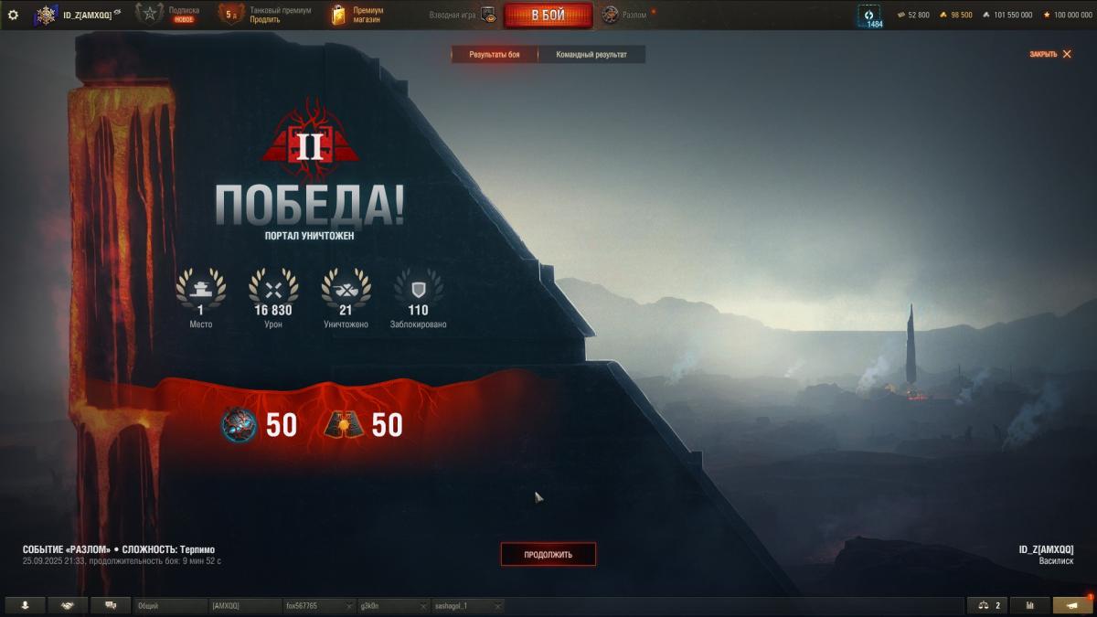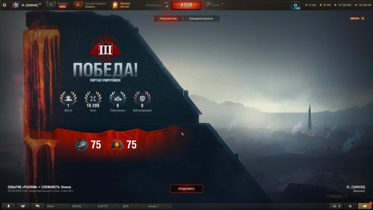 ID_Z Опубликовано: 20 октября, 2025 Игроки 13 735 публикаций 4 226 боёв Жалоба Поделиться Опубликовано: 20 октября, 2025 (изменено) Если начисление очков не меняли с теста, то вот, может кому то будут полезны скрины ниже.Еще раз предупреждаю, это было на тесте и может быть немного устаревшим.https://forum-mt-prod.lesta.ru/monthly_10_2025/post-151443583-0-72894900-1760969415_thumb.jpg - первый уровень сложности, победа, второе место по урону.https://forum-mt-prod.lesta.ru/monthly_10_2025/post-151443583-0-70194500-1760969460_thumb.jpg - второй уровень сложности, победа, первое место.https://forum-mt-prod.lesta.ru/monthly_10_2025/post-151443583-0-84403400-1760969501_thumb.jpg - третий уровень сложности, победа, первое место.https://forum-mt-prod.lesta.ru/monthly_10_2025/post-151443583-0-46405100-1760969554_thumb.jpg - четвертый уровень сложности, победа, первое место.https://forum-mt-prod.lesta.ru/monthly_10_2025/post-151443583-0-00012100-1760969586_thumb.jpg - пятый уровень сложности, победа, 2 место (где то 125 - 150 очков за первое место) А вообще конечно очень грустно, что в руководство по режиму не добавили столько полезной информации, все самим нужно проверять, наблюдать, измерять, исследовать... Изменено 20 октября, 2025 пользователем ID_Z 9 Ветеран Зоны 404, Арзагира 4.04 и Фирнульфира... 02 сен 2025 - 20:10 пользователь The_X_Factor сказал: танкист, запомни, это я могу объяснять тебе. Ты мне - не можешь Ссылка на комментарий Поделиться на других сайтах Другие способы поделиться...