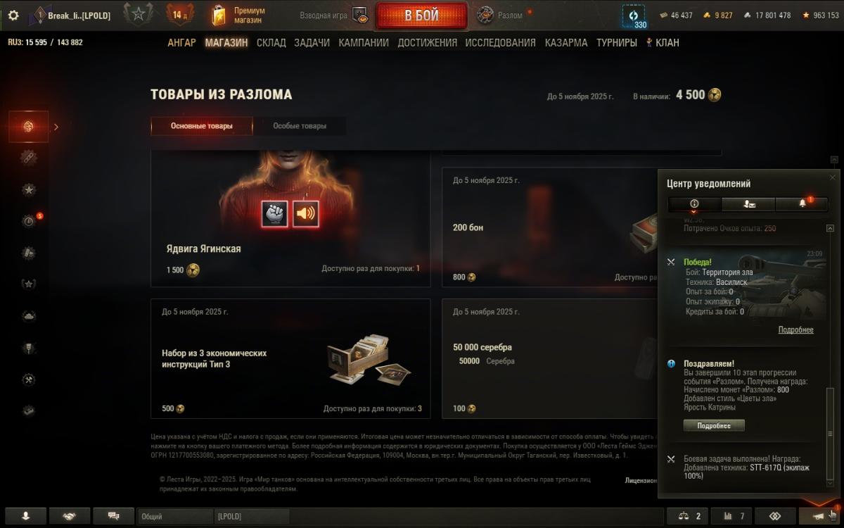 konny Опубликовано: 2 ноября, 2025 Игроки 9 615 публикаций 55 493 боя Жалоба Поделиться Опубликовано: 2 ноября, 2025 02 ноя 2025 - 12:13 пользователь Break_line сказал:Ы-ы-ы... Вчера дропнулся с бесплатной награды за 10ю ступень события. Spoiler Что так и не разобрали еще бесплатные? Ссылка на комментарий Поделиться на других сайтах Другие способы поделиться...