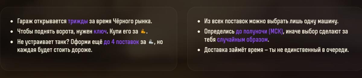 mad_trader Опубликовано: 14 ноября, 2025 Игроки 12 382 публикации 96 888 боёв Жалоба Поделиться Опубликовано: 14 ноября, 2025 14 ноя 2025 - 12:31 пользователь SUBARiTYANiN сказал:В цену за ключ уже будет заложена цена за танк? Т.е. купив ключ, мы гарантированно забираем танк какой-бы он там ни был, а если не нравится, реролим за серу? Или приобретая ключ мы только открываем гараж, а в нем будет предложение со своей ценой?На тесте игроки платили отдельно за открытие (первое за золото, 4 последующих за серебро с повышением цены) и отдельно за танки (первый был самый дорогой, пятый - бесплатно). В отличии от всех остальных, я - совершенно обычный. Ссылка на комментарий Поделиться на других сайтах Другие способы поделиться...