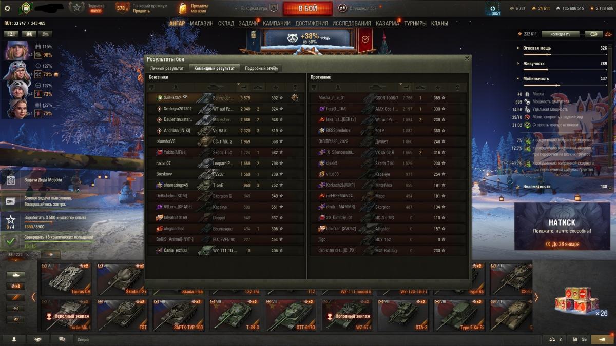 Дал скрин до бустов. Сейчас он фармит в разы больше. Иногда получается 3к сумарки. Обзор у тачки 480м. Эта ПТ просто не может играть от чужого засвета) Пробитие у нас 260mm. Маленькие размеры и отличная маскировка. Шнайдер может без зазрения совести играть как СТ. Играя в подкрадули. Скорость позволяет (60км/ч). Которую он набирает и держит. Залпы даю при каждом удобном случае. Мы ничего не теряем, если пробили 1 из 2. Потому что потом у нас включается автомат и мы можем добрать соперника. Опять же. Размеры маленькие, а танк очень подвижный. Конечная точность позволяет выцеливать даже пиксели. Но одиночными.