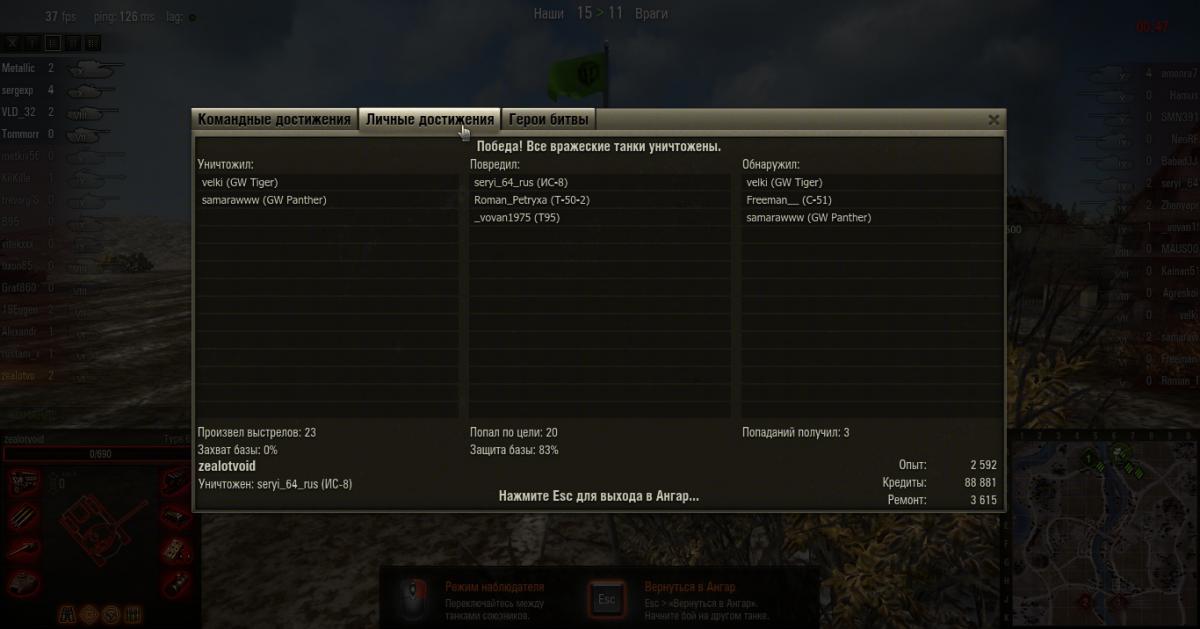 очередной бой. Кинуло к 7 уровням. 5 повредил, столько же увидел. одного подбил.