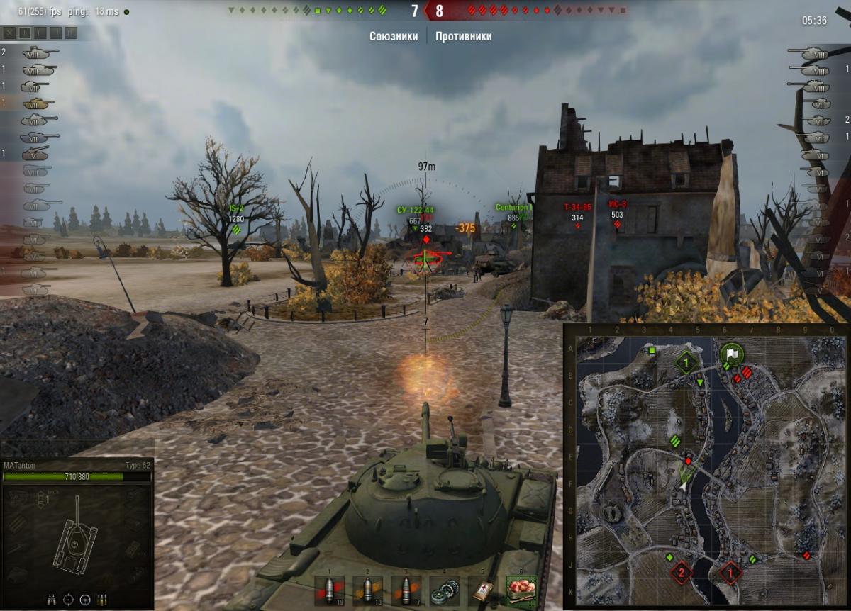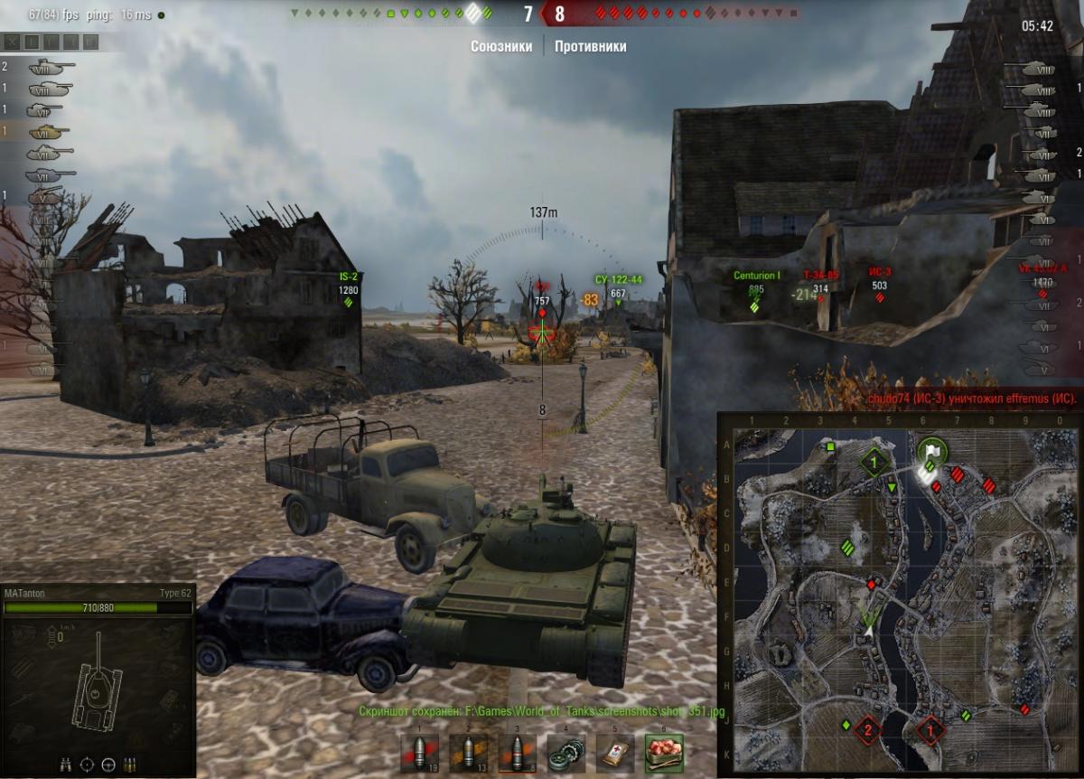 если кто то ещё боится т71 и его барабан вот скриншоты одого PvP 62 против 71)) ИСПОЛЬЗУЕМ ФУГАСЫ +противник получил 2 крита но не гусли))у 71 если не ошибаюсь в барабане 6 снарядов и ДПМ900 мы же используя фугасы можем за 4 выстрела 71 разобрать))