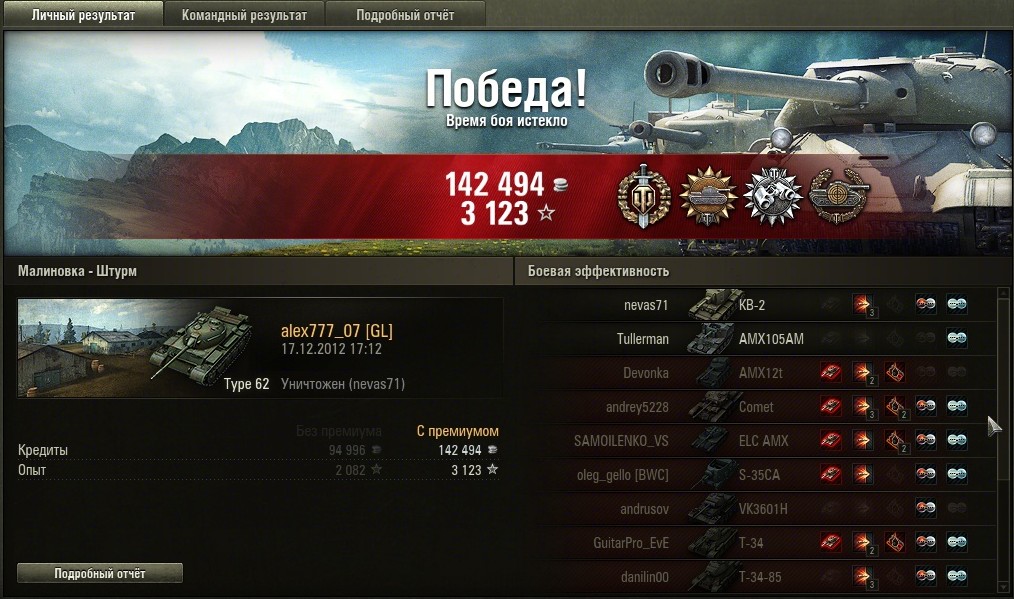 мой рекорд по опыту на танке и в профиле моём) но это не рекорд по серебру)))было и 150к+ , вот сам реплейhttp://wotreplays.ru/site/586625#malinovka-alex777_07-type_62