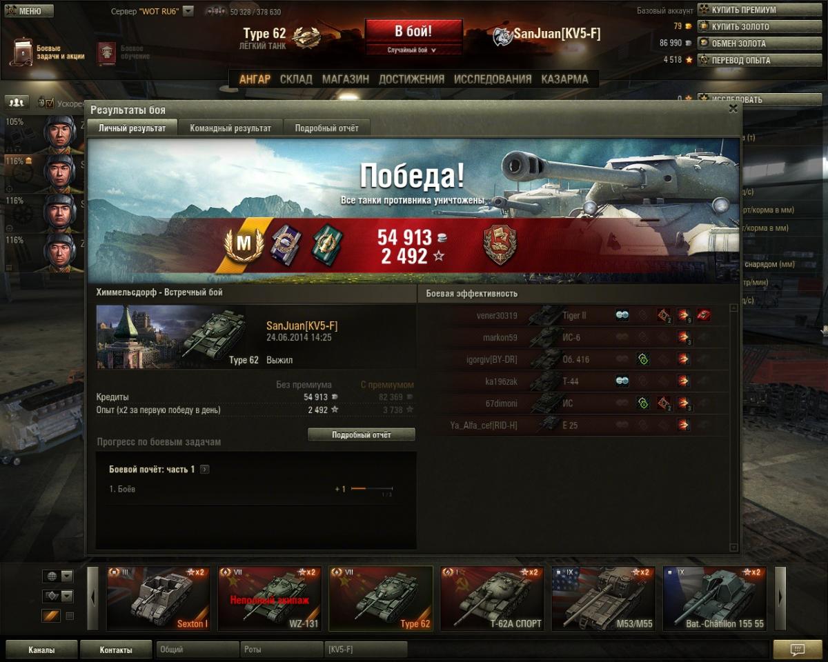 Танк замечательный, стал одним из моих любимых! Только что ушатал Т54Е1 причём полного, сижу в шоке. Много на WZ катал, так что стиль игры привычный. Пушка норм, пробивает даже некоторых 10ок, иногда ) в общем, весёлый танк!