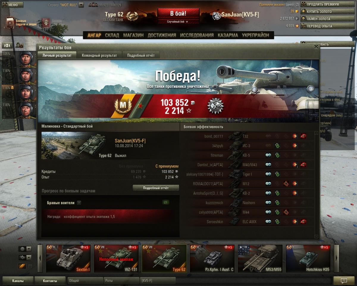 клева 25 сентября у меня будет халявный тип 62 в ангаре:great: