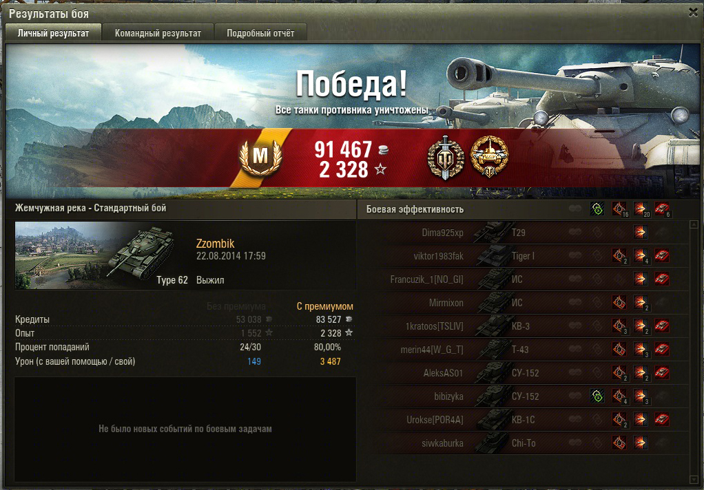 Ссылка на реплей этого боя: http://wotreplays.ru/site/3117056#zhemchuzhnaya_reka-zzombik-type_62