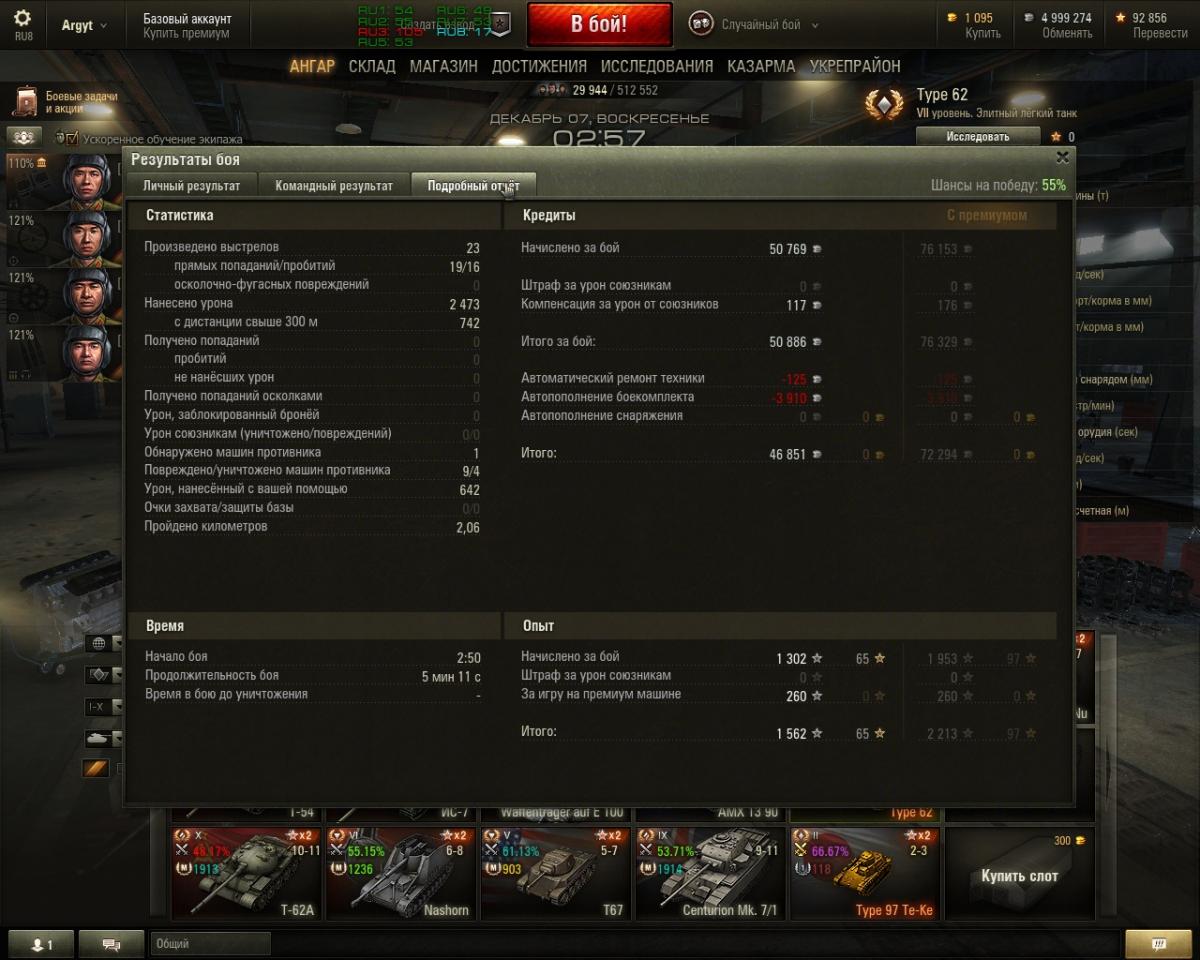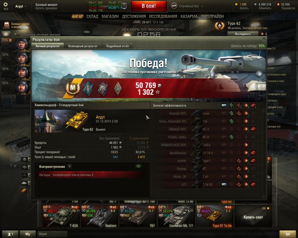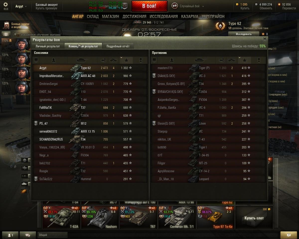 Дима, впечатлил, грац, +. У меня самое большое - 75% на Type-64. Есть чему учиться. Присоединяюсь к Алексею - "реплеи в студию".