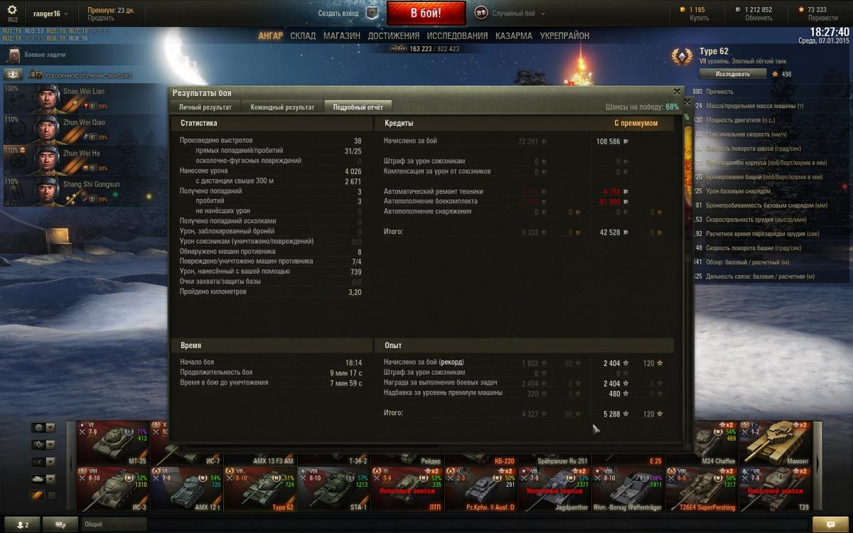 дамаг у маленького типчика почти как у Т34, 2-е место в команде, да еще и пару фрагов скрысили жлобы союзные, ни стыда, ни совести