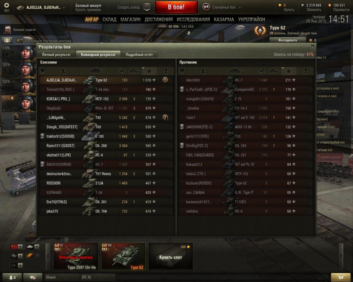 Понадобился слот. Встал вопрос, что продать. В свое время получил 62 и 220. думал 220 продам, а на 62 буду получать удовольствие. Сейчас еще появился стуг4. Хотел продать стуг, но что-то в нем есть. Передумал. Думал в свое время продать 220, но он оказался великолепным танком, который лучше, по мне, чем кв-1. А вот мои ожидания по поводу 62 не оправдались. Середнячок, который совершенно ни чем не блещет - ни обзором, ни скоростью, ни пушкой, ни маневренностью. На 7 уровне есть намного круче лт - 71 и бультерьер. Вы скажете, что танк фармит? Ха, я фармлю на 71 не хуже. т.к. кидают к 10-кам, а это дополнительный бонус. Ведь для нормального лт пофиг уровень боев. Если на 71 попадаешь к 8-кам, то это для него вообще топ. А для 62? Продам я его, чтобы купить 34-85 для ибз.