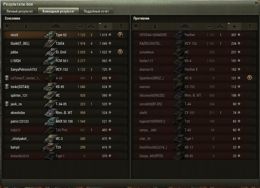 Это понятно) Я про средние значения, там дамага, засвет, опыт и прочее. Не в курсе по этому?