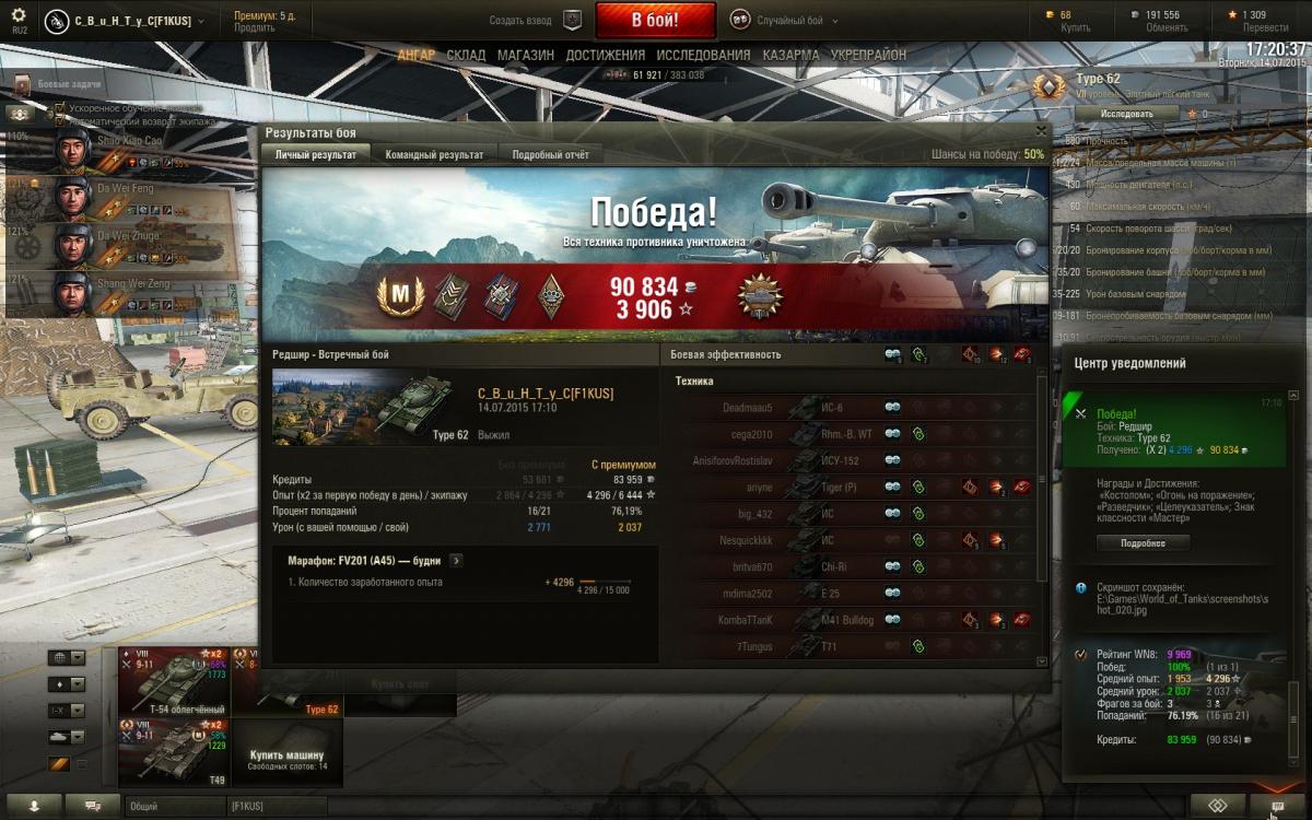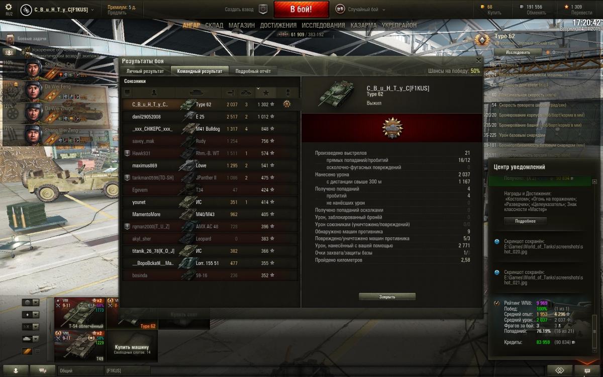 в твоем недавнем реплее у типа62 была фишечка: он +1 лт в команде.