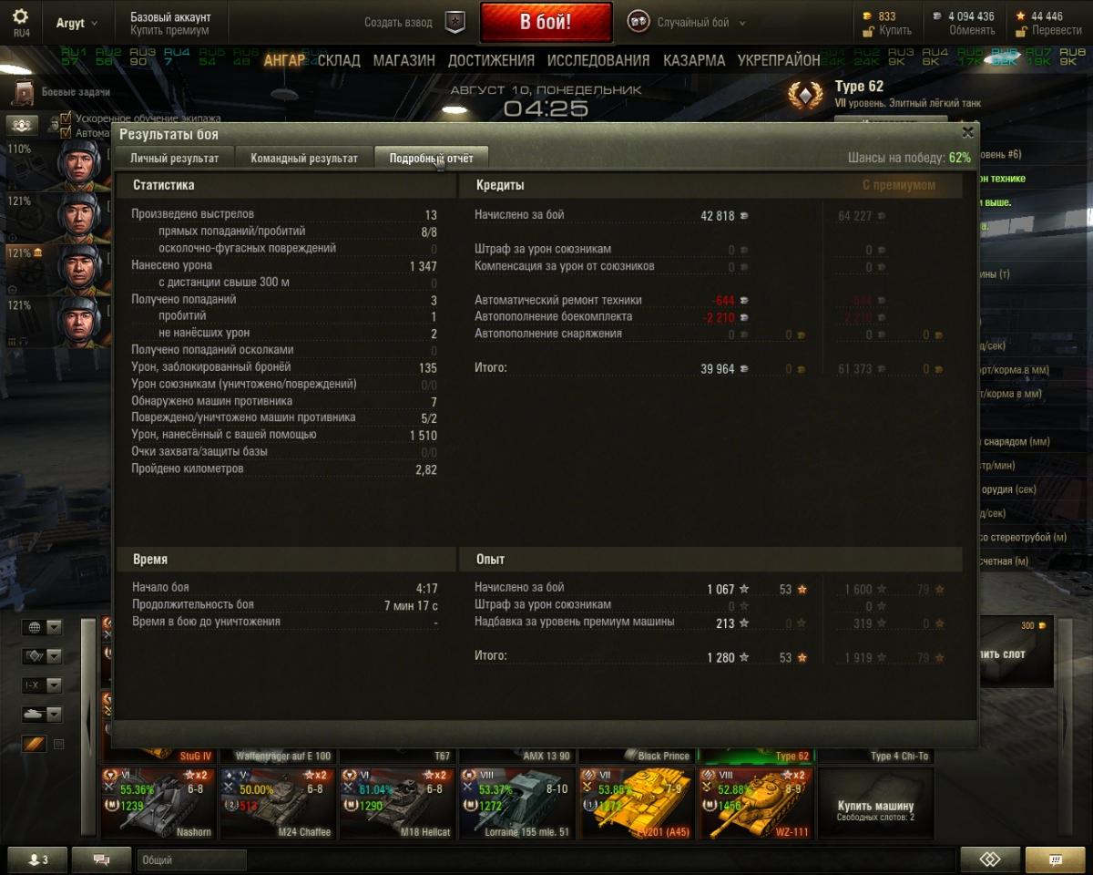 я скинул скрин где показано что тип 62 в 11 ур боев где его быть не должно