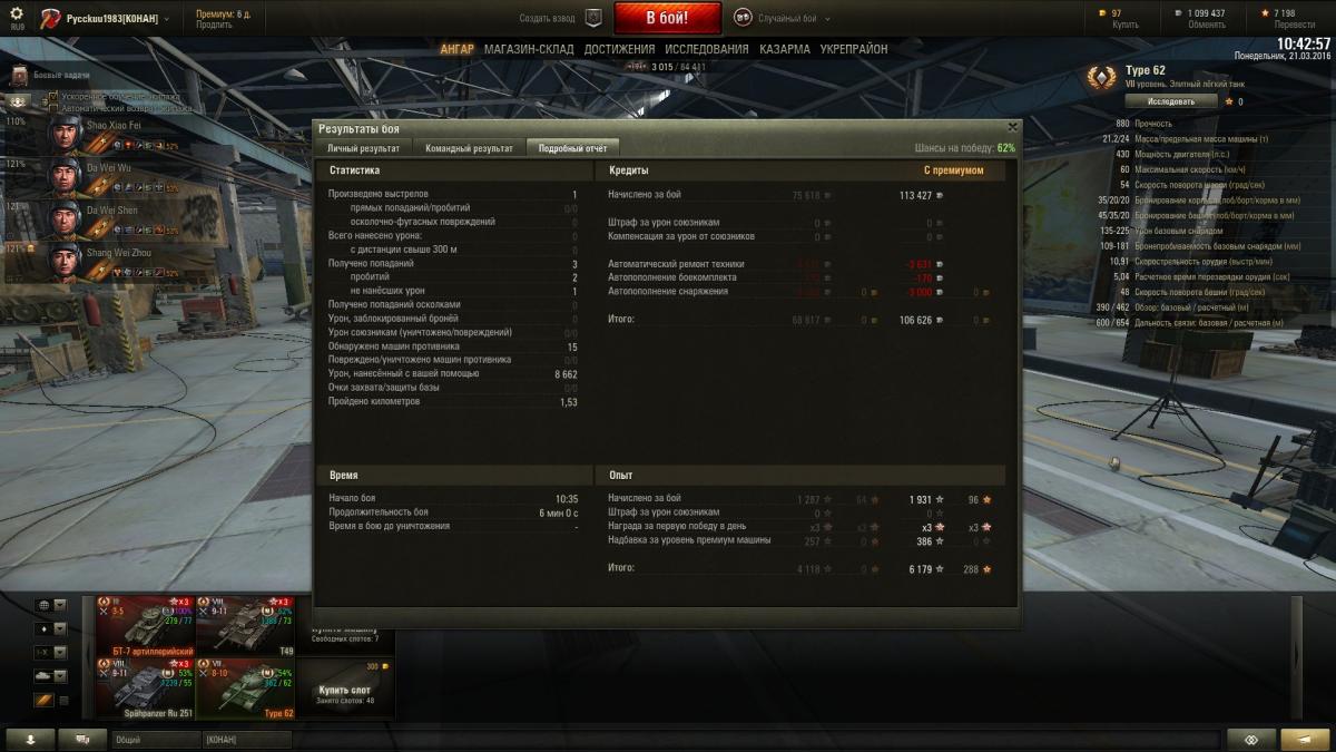 сейчас и опыт и настрел на тип 62 активно растут