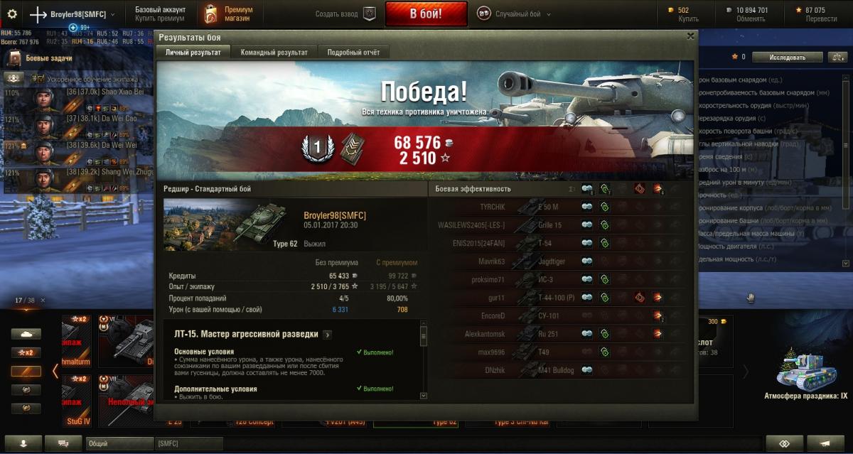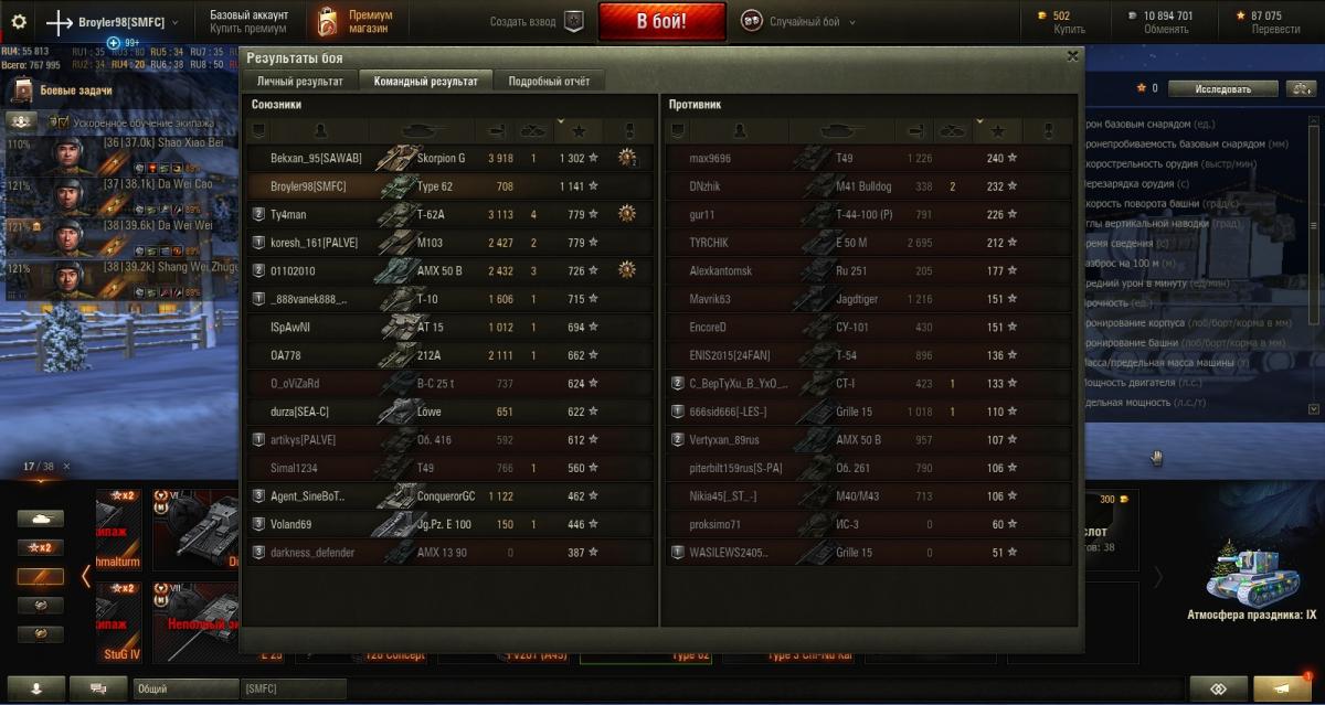 я тип62 получил по акции, не покупал. Танк прямит руки, т.к. без этого играть не получится.