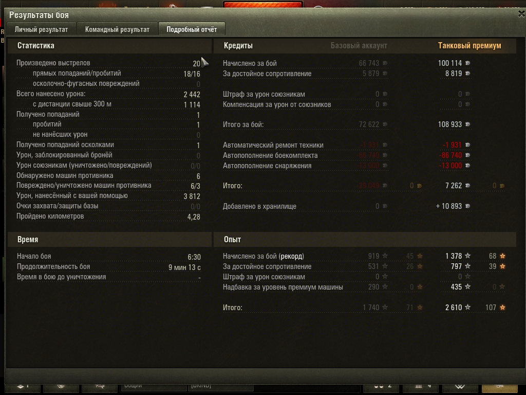 Купил во время акции " Черная пятница" за 400р, мне очень понравился. Поставил Рога, Сетку+малошумную систему выхлопа +доп.паек получил в итоге 562 метра обзора на 7 то уровне и незаметность 44,73%. Максимальный урон пока 2847, насвет чуть более 3000.хороший танчик для своего уровня, в топе вообще чудеса творит. Если за место малошумной системы выхлопа поставить боновый вентилятор, то обзор раскачивается до 584. Изменено пользователем Ogi_Morosco
