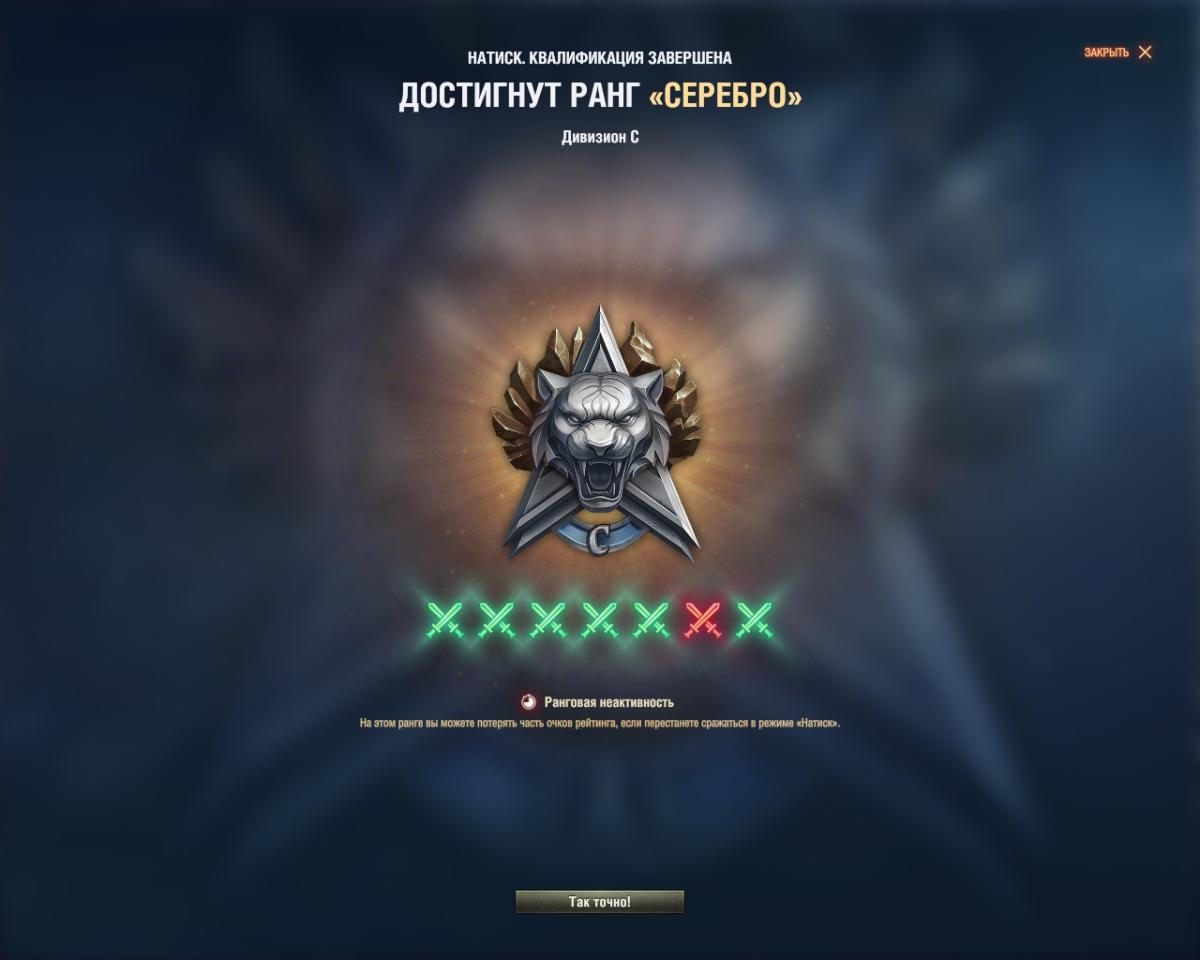 Conquistador Опубликовано: 4 декабря, 2025 Игроки 2 001 публикация 36 044 боя Жалоба Поделиться Опубликовано: 4 декабря, 2025 (изменено) 04 дек 2025 - 21:09 пользователь WH00SH сказал:Ну у меня что вчера на твине 6 из 7 победок, Серебро С, что сегодня 6 из 7 победок Серебро Е. Техника плюс-минус одинаковая. Правда на твине Чемпа, на основе Золото. Так что прошлый сезон влияет.https://forum-mt-prod.lesta.ru/monthly_12_2025/post-267227959-0-84782600-1764871713_thumb.jpghttps://forum-mt-prod.lesta.ru/monthly_12_2025/post-267227959-0-15387100-1764871721_thumb.jpgВ прошлом сезоне запрыгнул в золото и забил, причём так сильно, что вообще не играл после достижения и нонстоп терял очки. В каком-то серебре в финале был.Так что в этом сезоне с 5 из 7 победами и норм уроном я был отправлен в А-бронзу В прошлом сезоне с +- таким же результатом квалификации попал в А-серебро, тк сезон перед был в Чемпе, так что влияет 100%! Изменено 4 декабря, 2025 пользователем Conquistador Ссылка на комментарий Поделиться на других сайтах Другие способы поделиться...