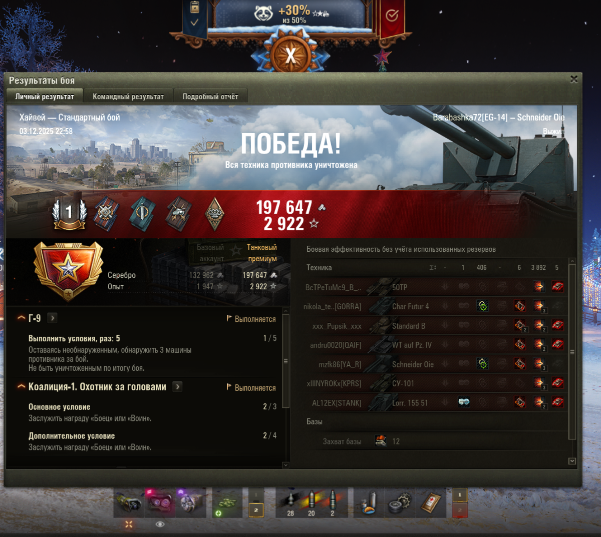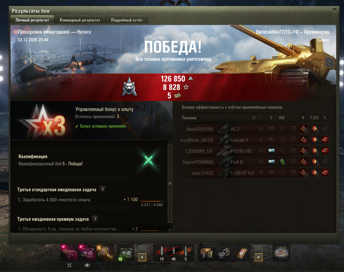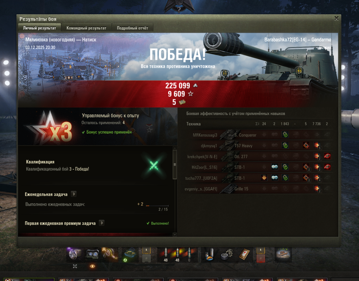 _StarFox_ Опубликовано: 3 декабря, 2025 Игроки 4 060 публикаций 56 709 боёв Жалоба Поделиться Опубликовано: 3 декабря, 2025 03 дек 2025 - 23:09 пользователь Romdoe сказал:как выполнить 12 еженедельных задач за неделю?та пофиг, там 15 фрагов за день нужно и 4 победы по 750 опыта, я пока победил только раз))) пусть сергейка с дашей задачи делают, ну или пусть Бурунов Петрова заставит... Ссылка на комментарий Поделиться на других сайтах Другие способы поделиться...